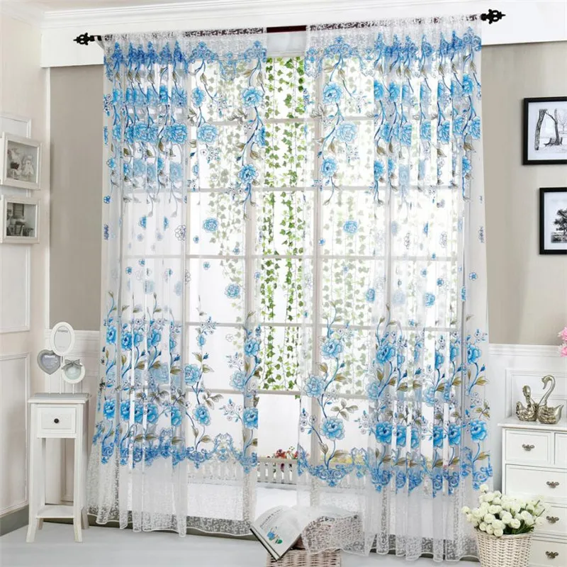 Прозрачная занавеска для эркера 100*200 см, летняя декоративная марлевая Тюлевая занавеска для дома, кафе, двери, панели, Цветочная оконная ширма