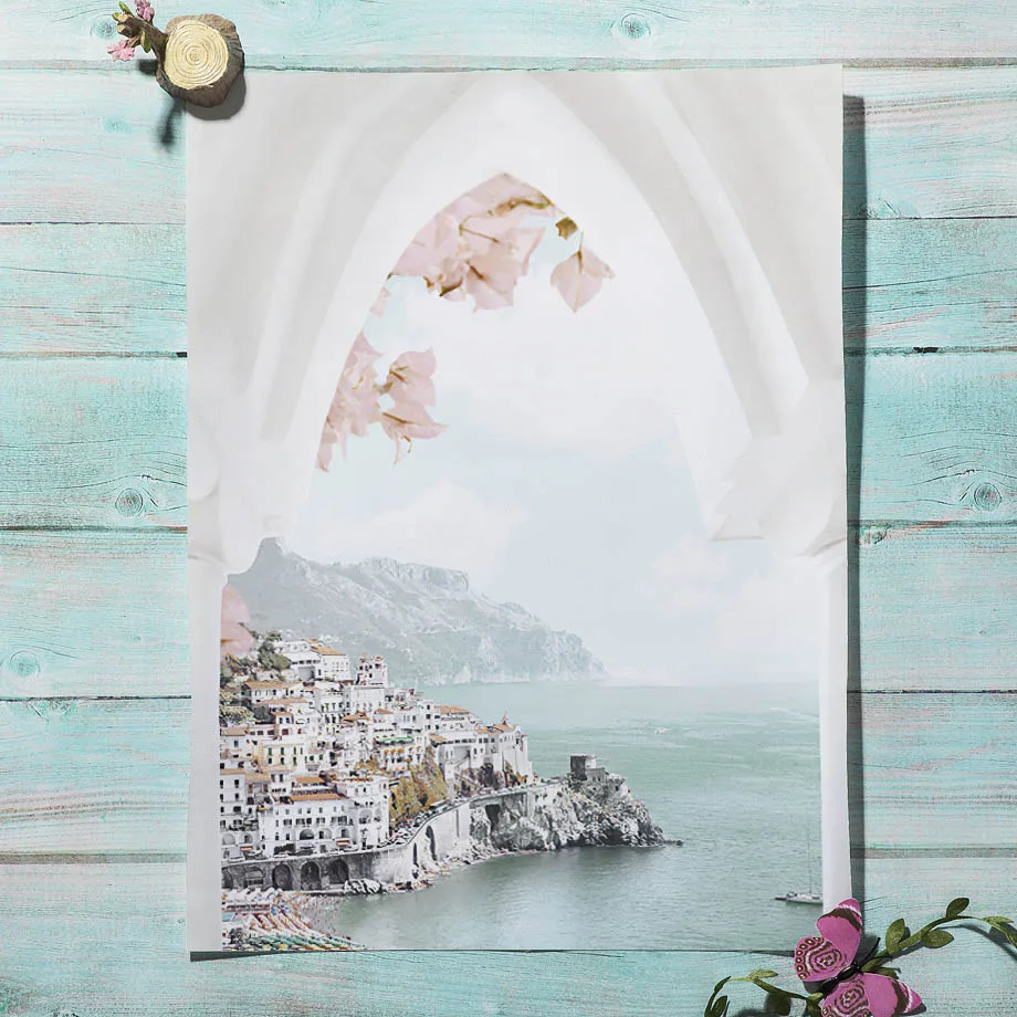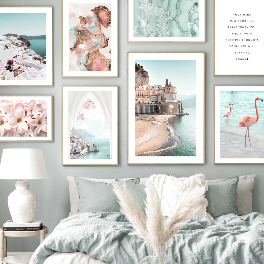 Постер с изображением Амальфи-побережья пляжа, арки Санторини, цветов, красивые чернила, скандинавский постер, настенное художественное рисование на холсте, декоративные картины для гостиной