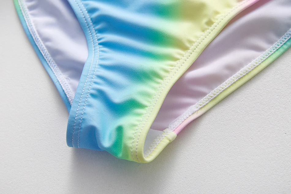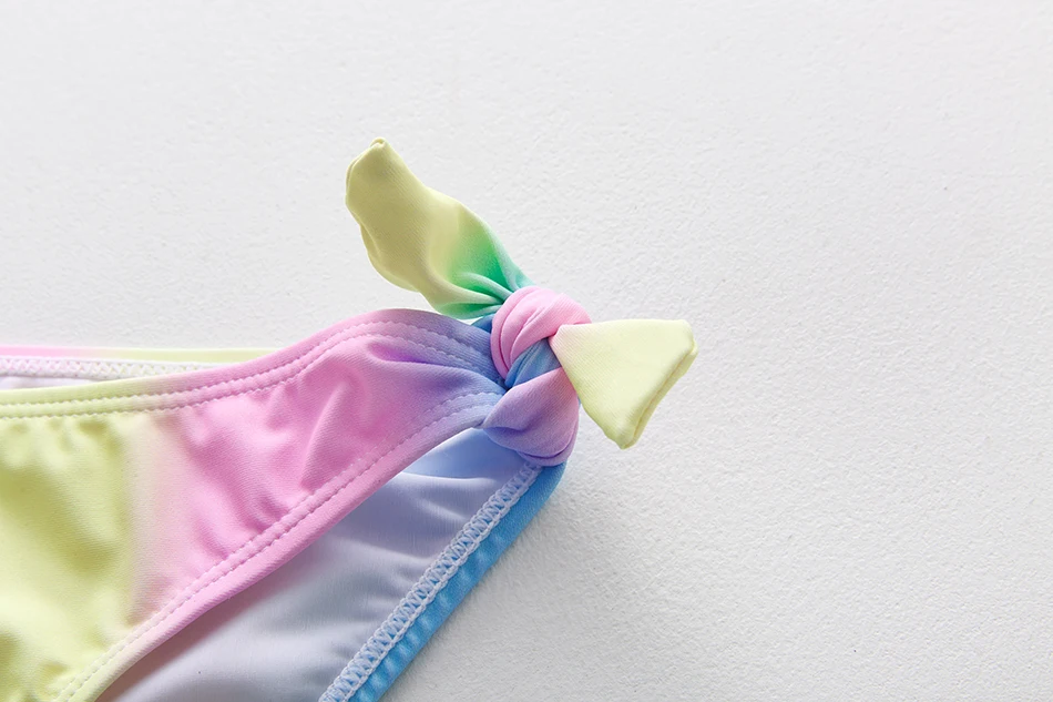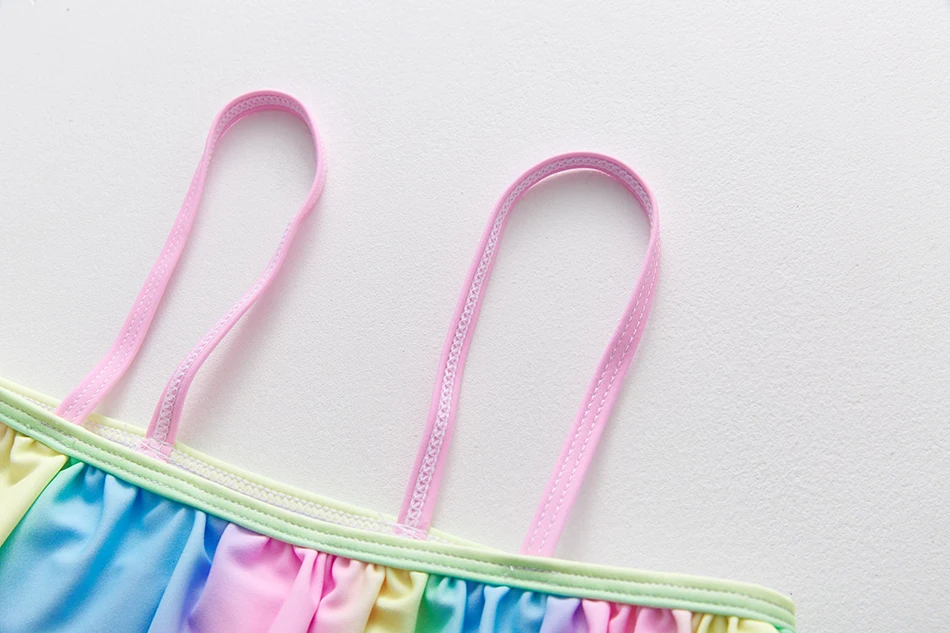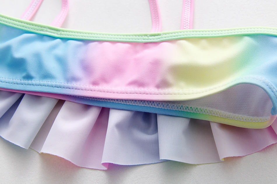 Радужный Купальник для девочек 5-14 лет, новинка 2021, Радужный купальник из двух предметов для девочек, купальник с бантом, комплект бикини, купальный костюм 9072