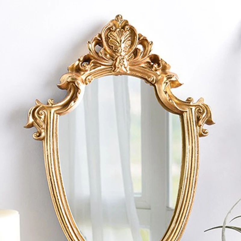 Рельеф смолы Декор зеркало винтажный настенный постер зеркало Ванная комната Декор Золотой щит Форма макияж, зеркальный домашний декор