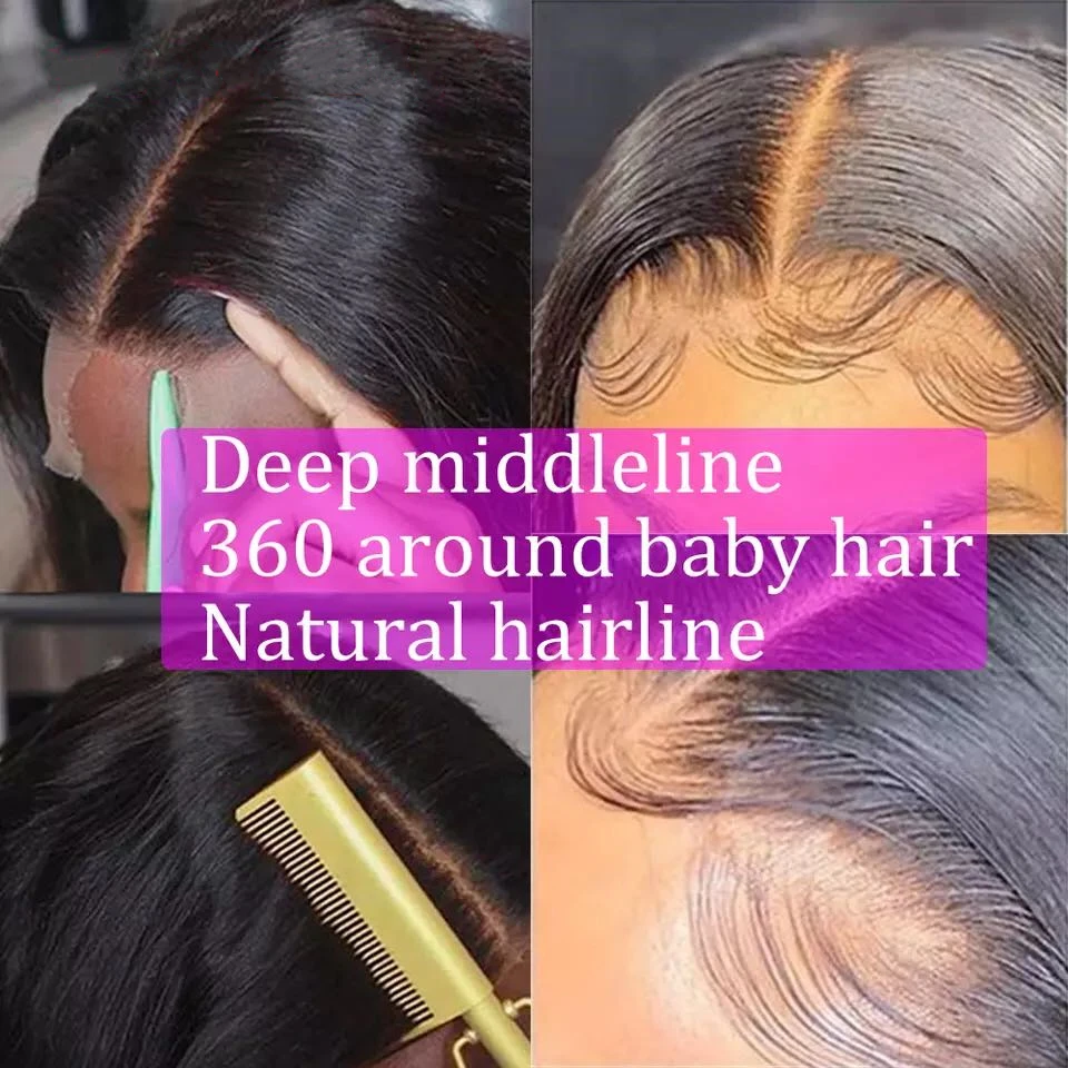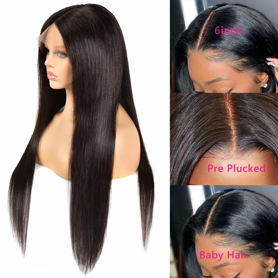 Парики из натуральных волос с прямыми волосами, 32 дюйма, 13 х6 дюймов