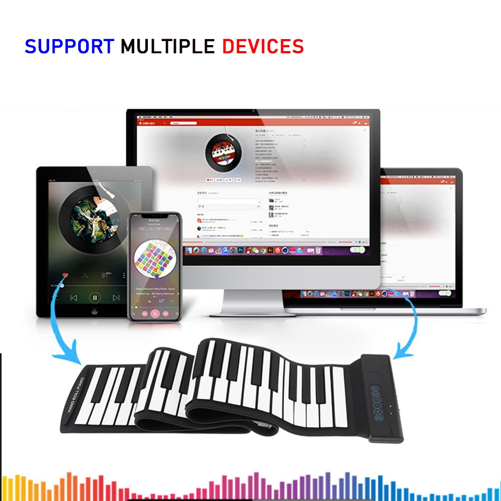 Электронное пианино с 88 клавишами, гибкая мягкая силиконовая клавиатура из АБС-пластика с портом USB и MIDI, с педалью для поддержки без гудка