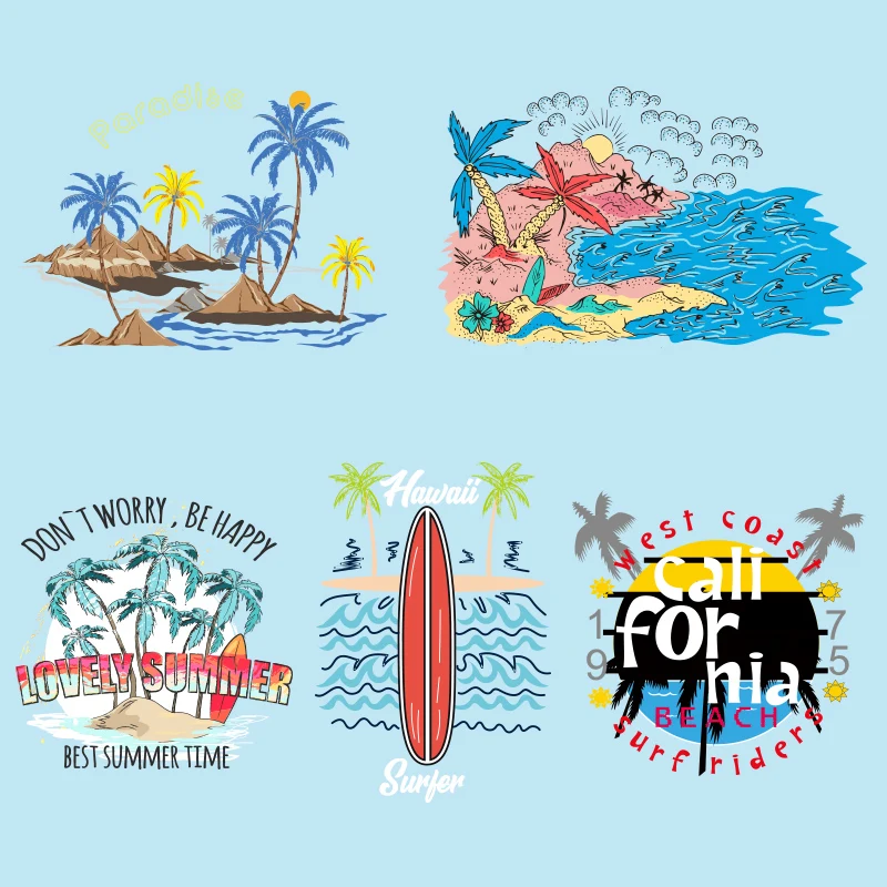 Нашивки для одежды с узором в виде кокосового дерева для отпуска, термочувствительные нашивки для футболок сделай сам