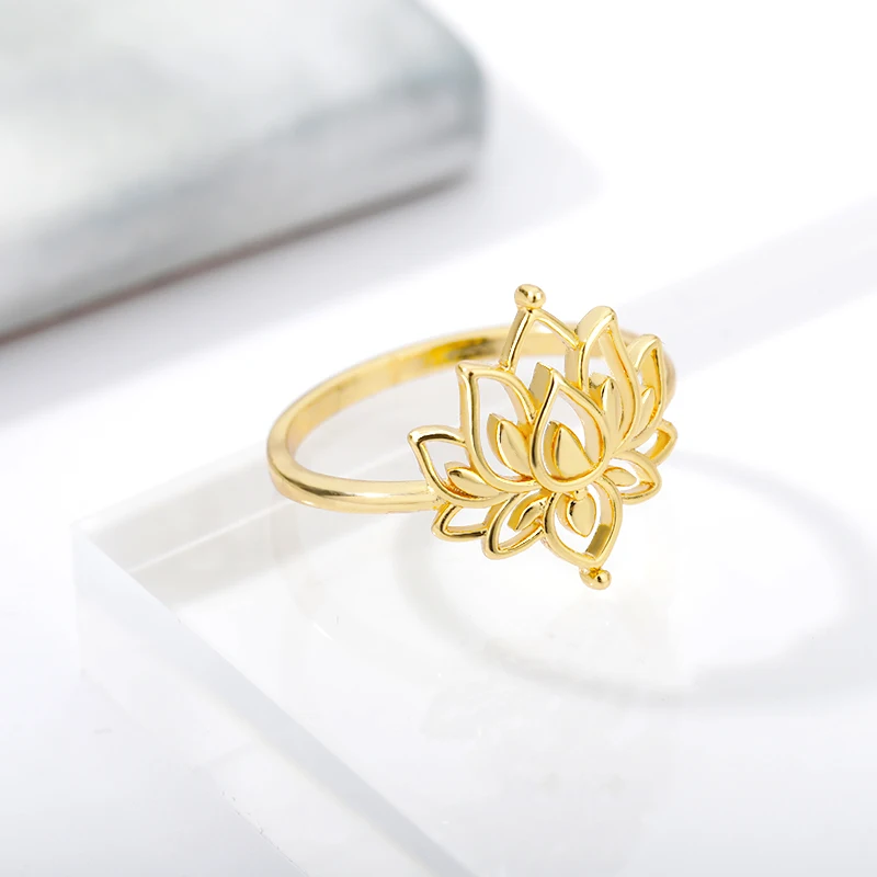 Лотоса kольцо в форме цветка для женщин Креативный дизайн завод Золотой Meatl обручальные кольца, ювелирное изделие, подарок Bijouox Femme