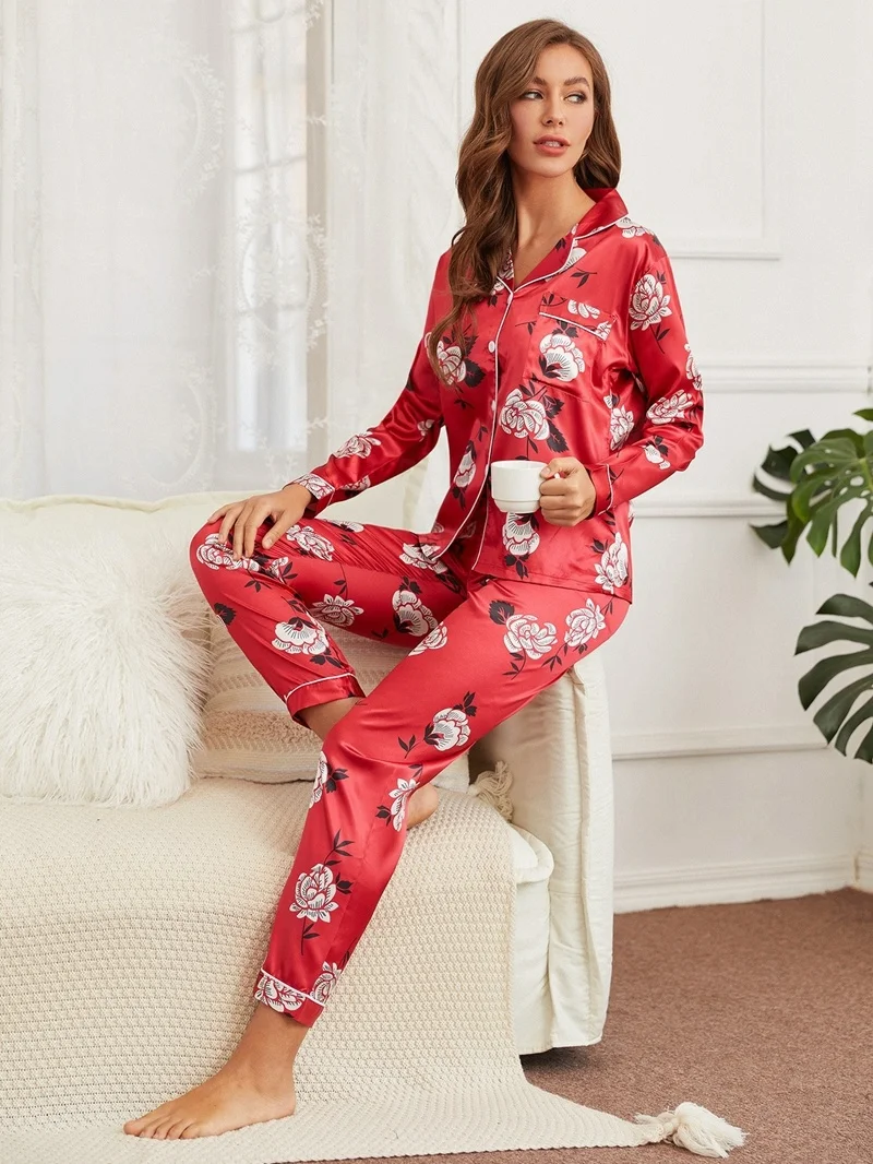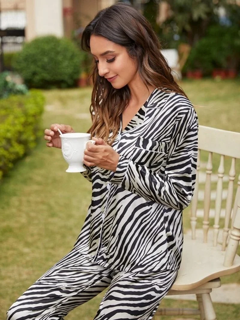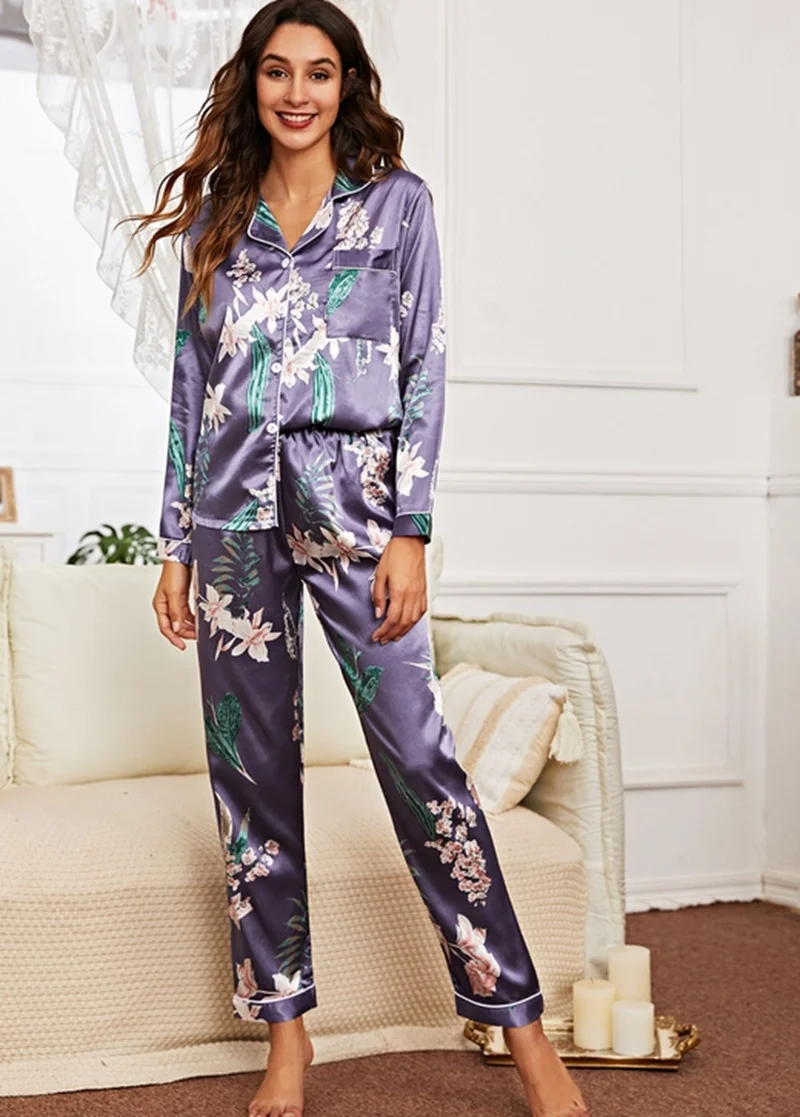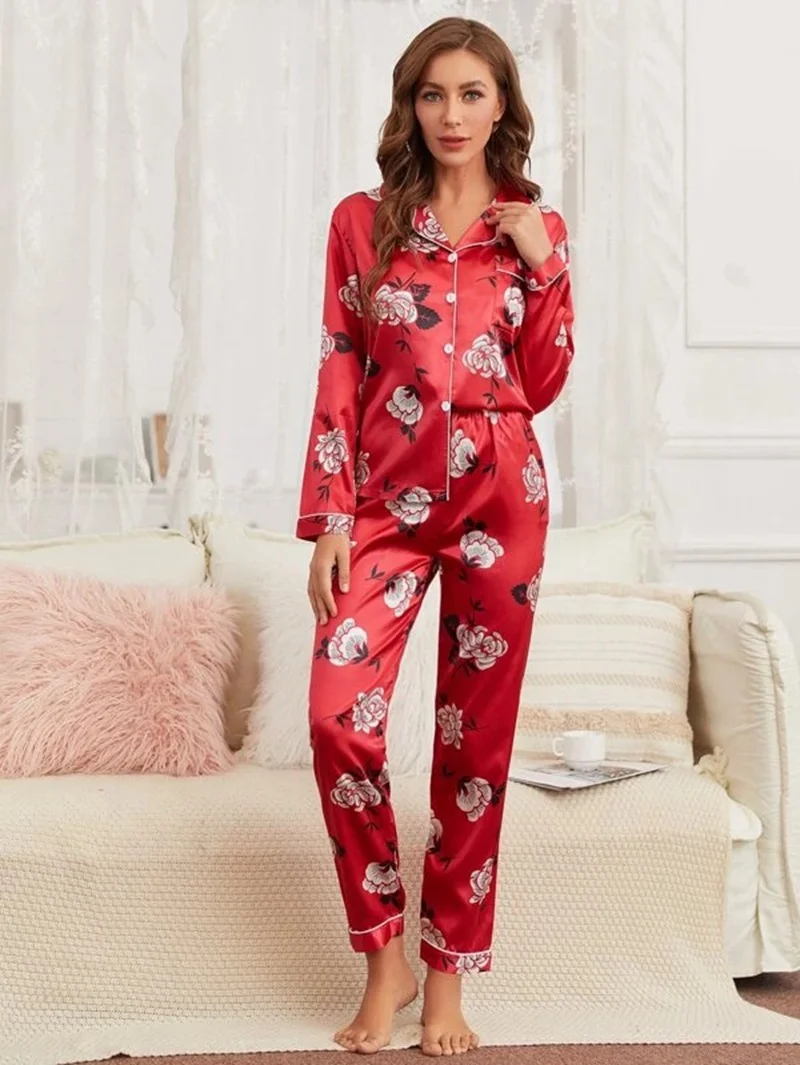 Пижама женская, шелковая, атласная, с длинным рукавом и штанами, ве...