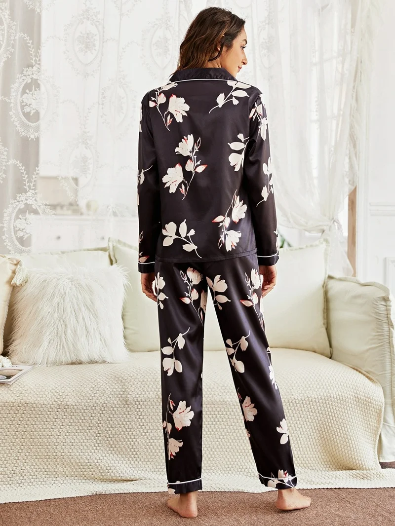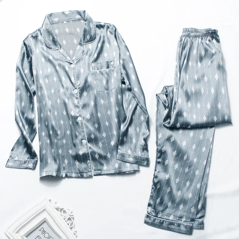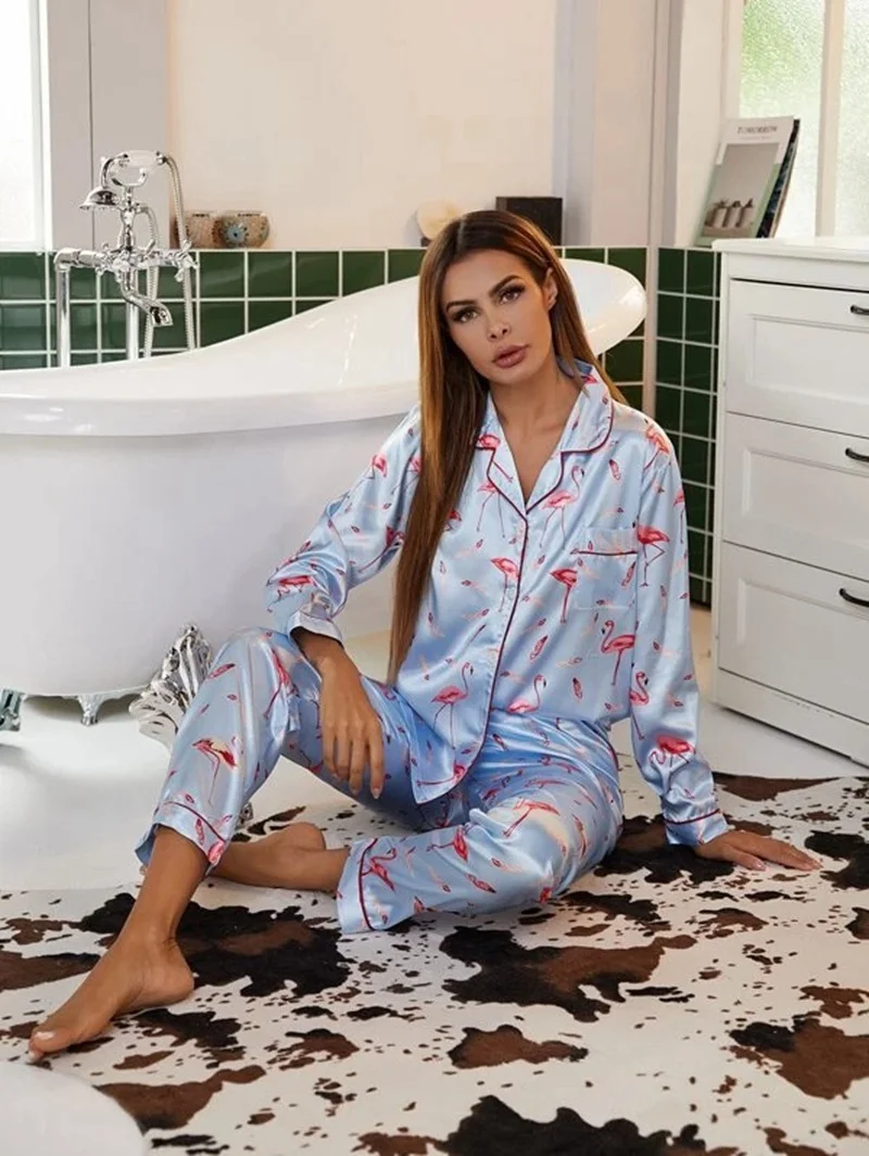 2021 Шелковый Атласный пижамный комплект, брюки с длинным рукавом, ...