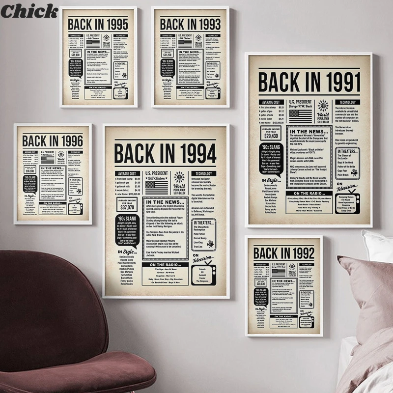 1980-1999 плакаты и принты газета винтажные картины на холсте настенное искусство День рождения настенные картины для декора гостиной