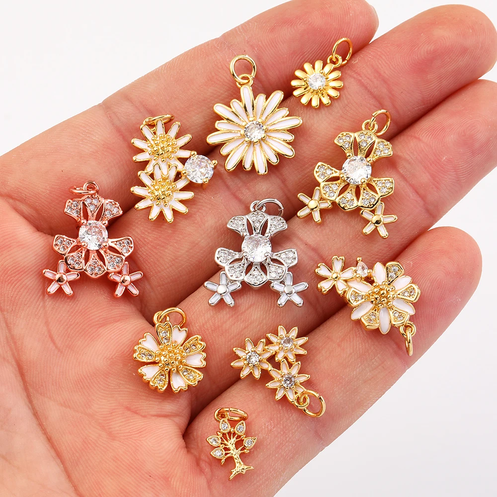 Подвески с цветами для изготовления ювелирных изделий, дизайнерские ювелирные украшения с изображением золота, растения, дерева, для самостоятельного изготовления сережек, ожерелий, браслетов, медь