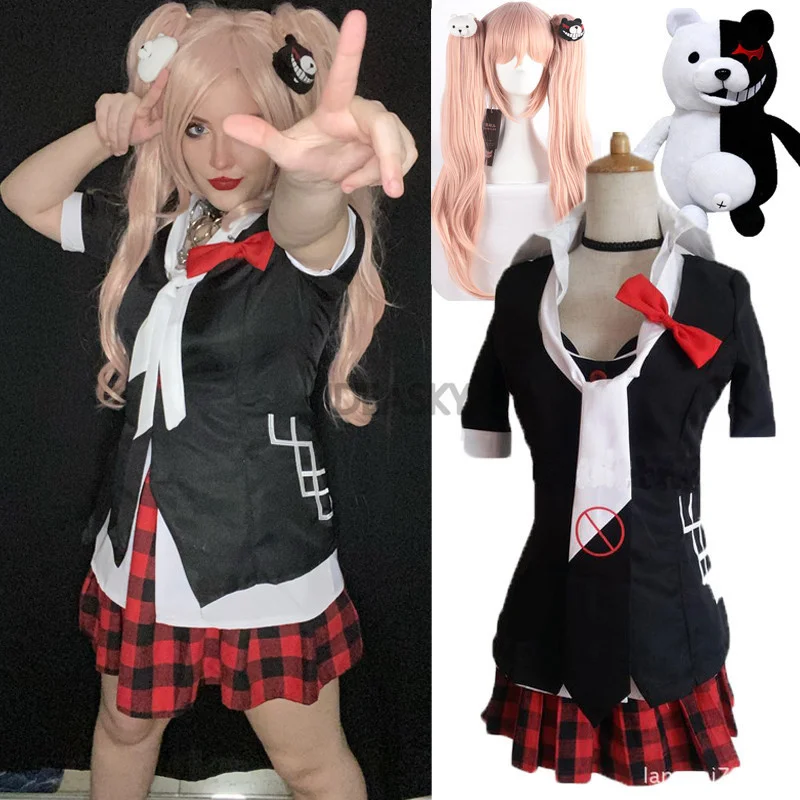 Danganronpa Косплей Аниме Дзюнко Эносима тиснение Inushio Kimuchi Dangan Ronpa Trigger Happy Havoc косплей костюм парик туфли