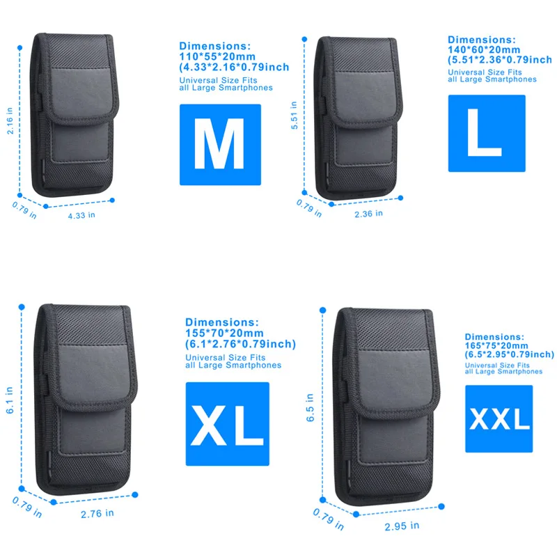 (1) Размер M: все мобильные телефоны ниже: 11 см * 5,5 см * 2,0 см
