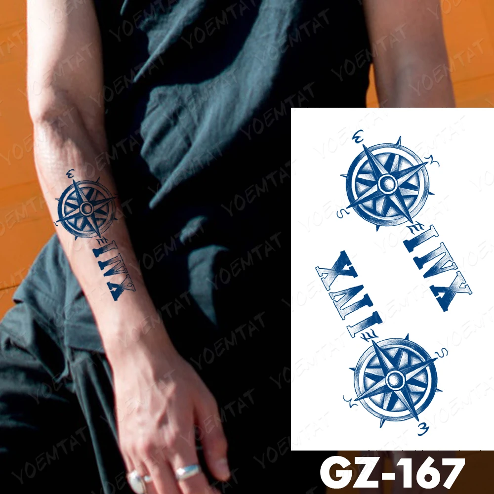 Чернила для сока, татуировки, боди-арт, стойкие, водонепроницаемые, временные тату, стикер, моряк, руль, тату для рук, поддельные, крест, роза, компас, Татто