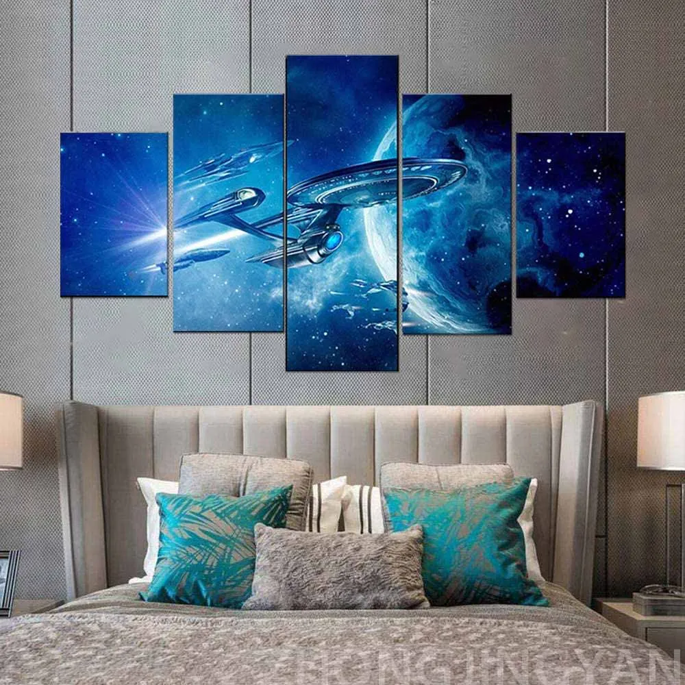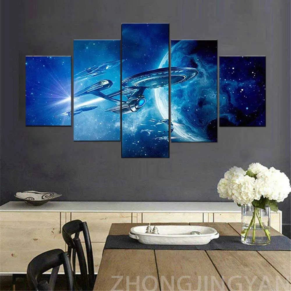 Картина на холсте для гостиной, 5 шт., картины Звездный путь, Звездный Корабль, Энтерпрайз, современное произведение искусства, постеры для домашнего декора