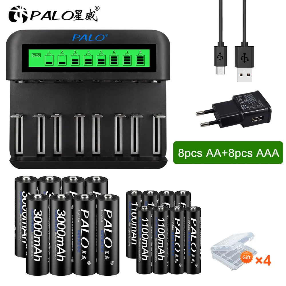 PALO 8 шт. 3000 мАч AA аккумуляторная батарея + LCD интеллектуально...