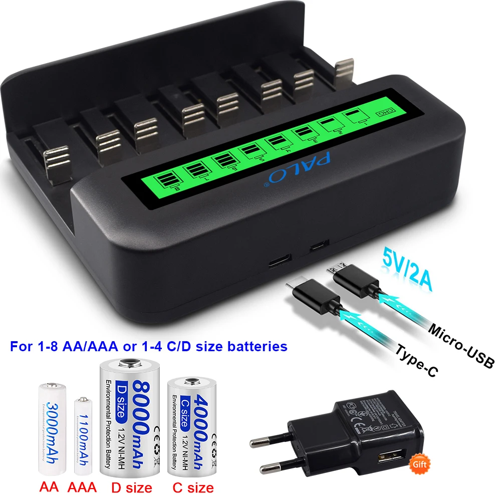 Аккумуляторное зарядное устройство PALO 1,2 в с ЖК-дисплеем, AA AAA...
