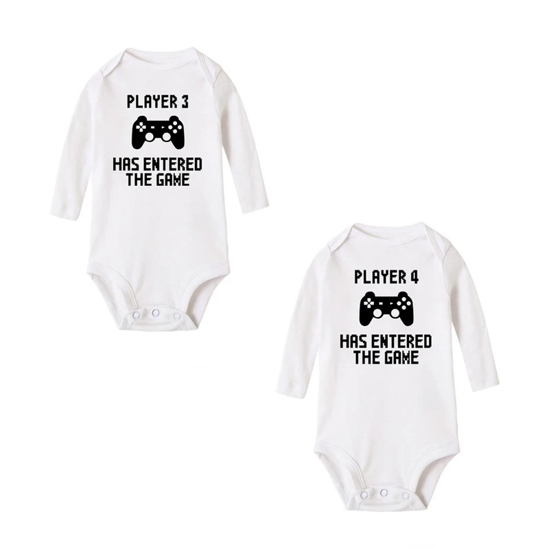 Игрок 3 в 4 игры, забавные комбинезоны для новорожденных, близнецов, комбинезоны с длинным рукавом для младенцев, братьев и сестер, семейная Одинаковая одежда