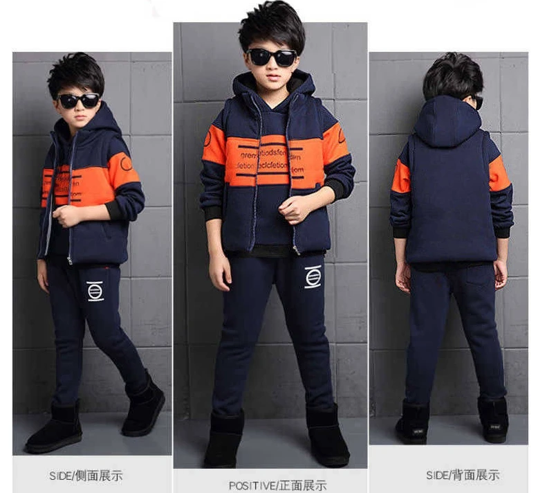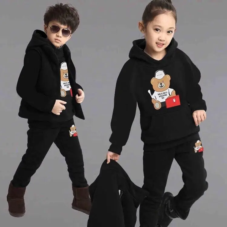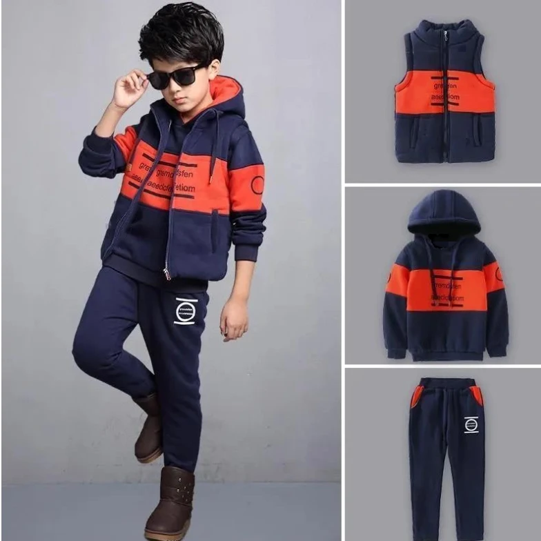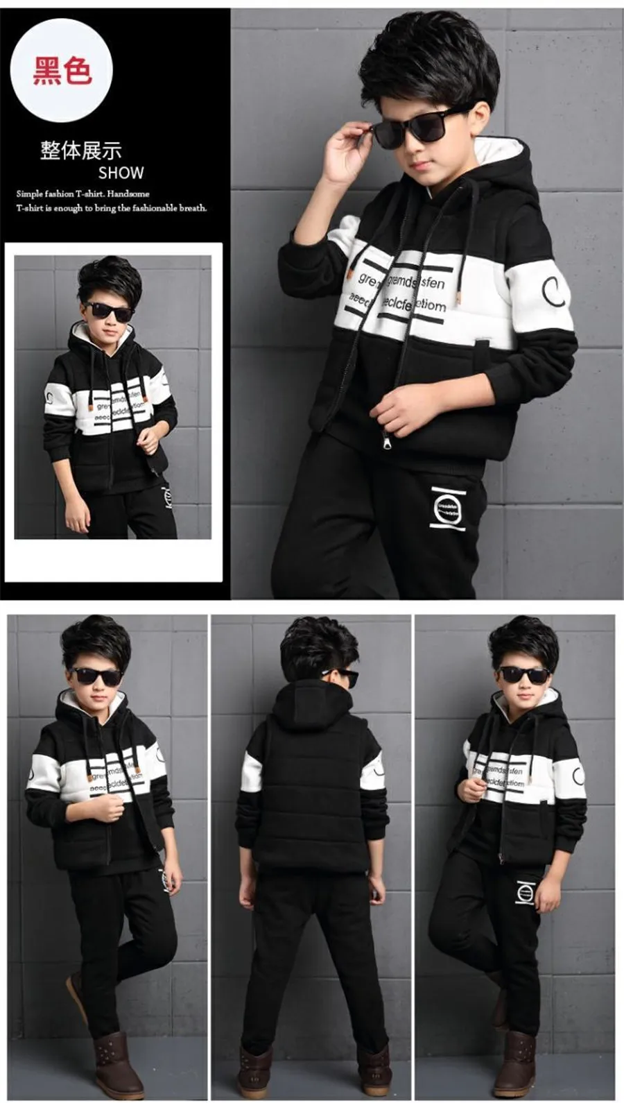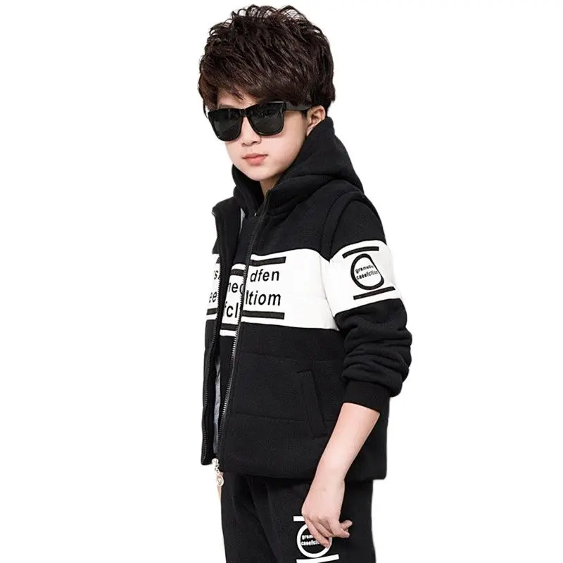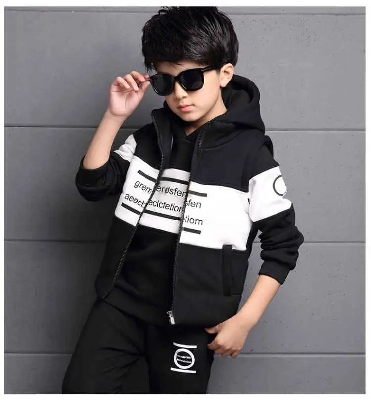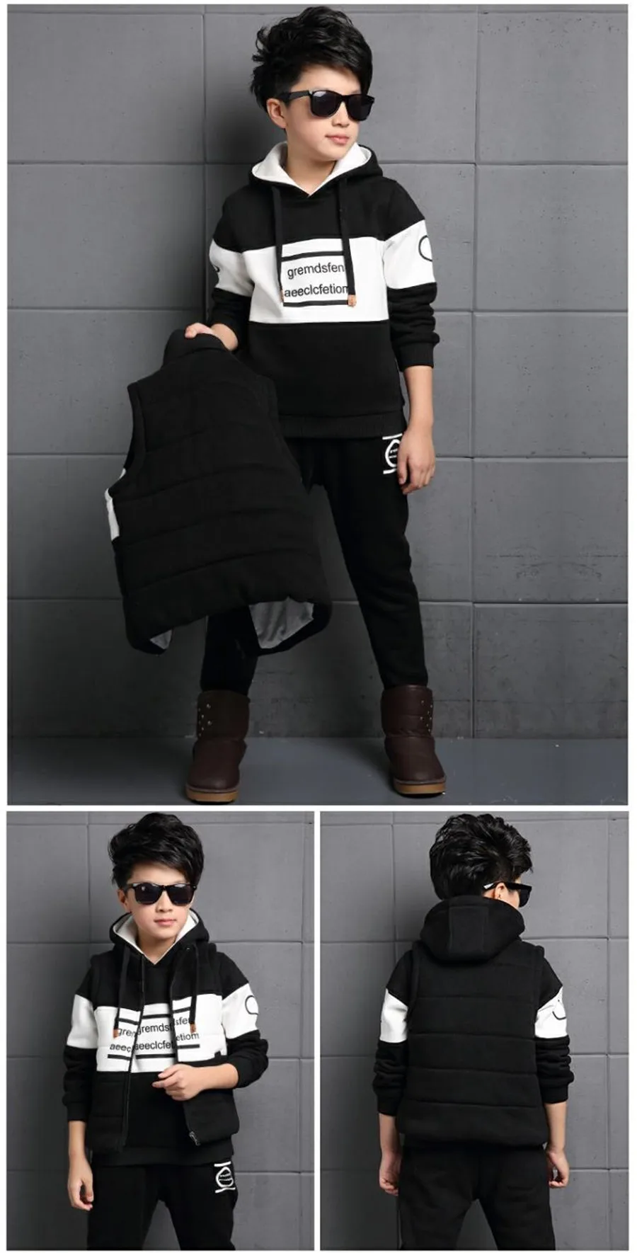 Спортивный костюм для мальчиков 3 шт.компл. Детский Костюм хлопковый жилет с капюшоном + футболка + брюки для мальчиков детская спортивная одежда спортивный костюм теплая одежда