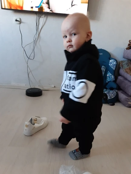 Костюм пришел очень быстро, в целом к качеству товара нет претензий, единственное что жилетка на фото выглядит более плотной и толстой. В реале она сделана из одного материала с костюмом. На рост 120 брала размер 8Т (хотела взять с запасом), штаны сели по росту, а худи и жилетка велики. Поэтому штаны к весне будут малы, а кофты еще подойдут