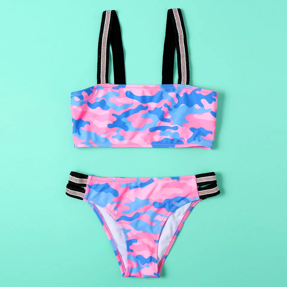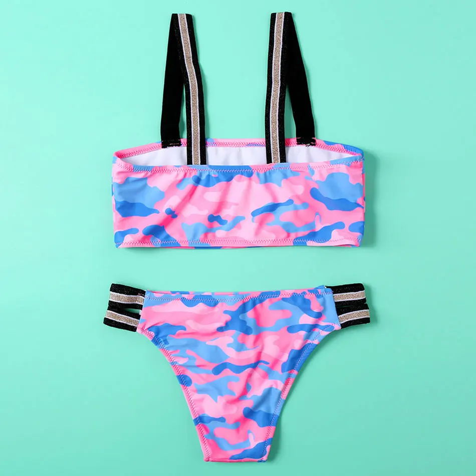 Купальник Камуфляжный для девочек, детский купальник с поясом, комплект бикини для девочек 9-16 лет, купальный костюм из двух предметов, пляжная одежда
