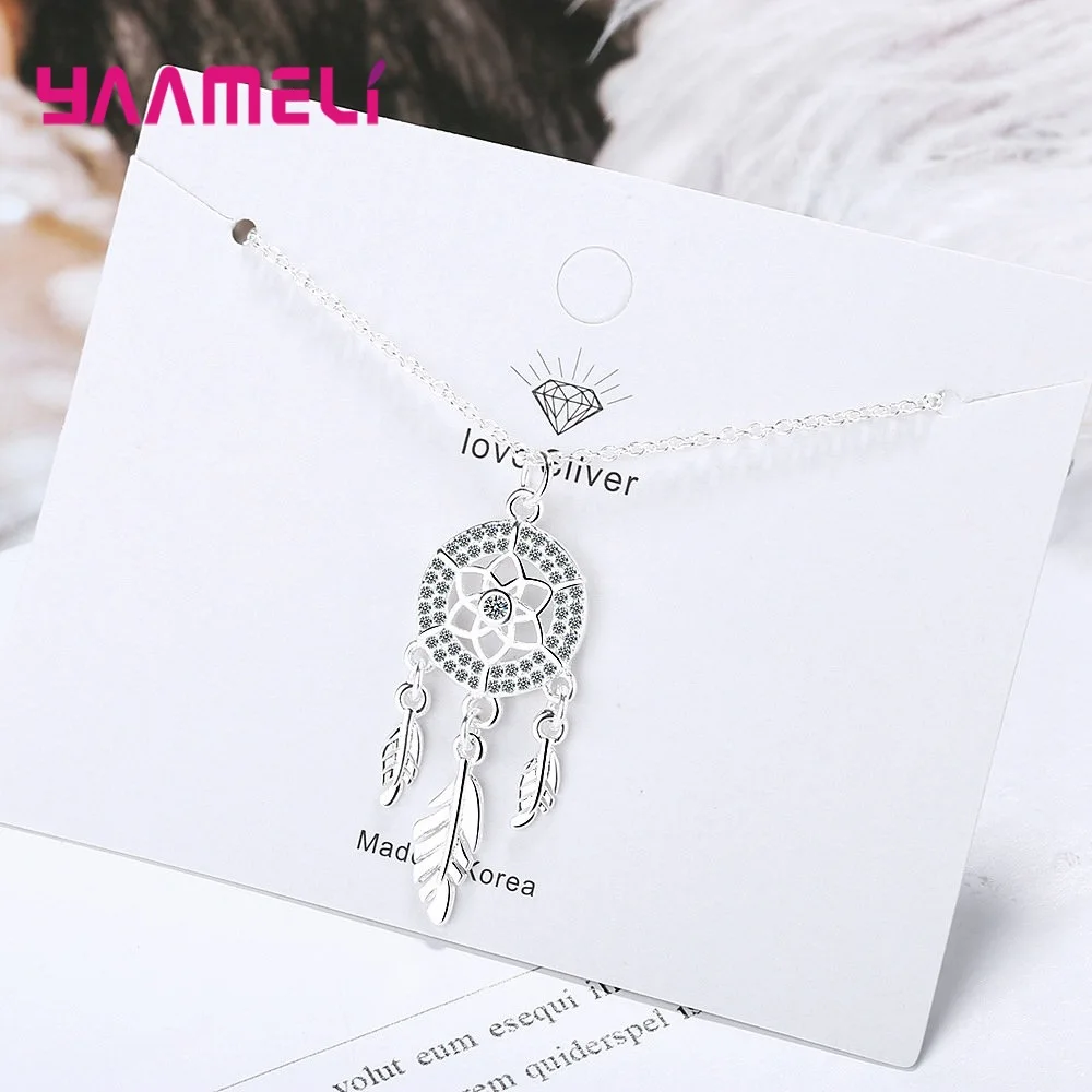 Женская бижутерия, романтические подвески из стерлингового серебра 925 пробы с кубическим цирконием, ожерелье Ловца снов, индийское ювелирное изделие, подарок для женщин на Рождество