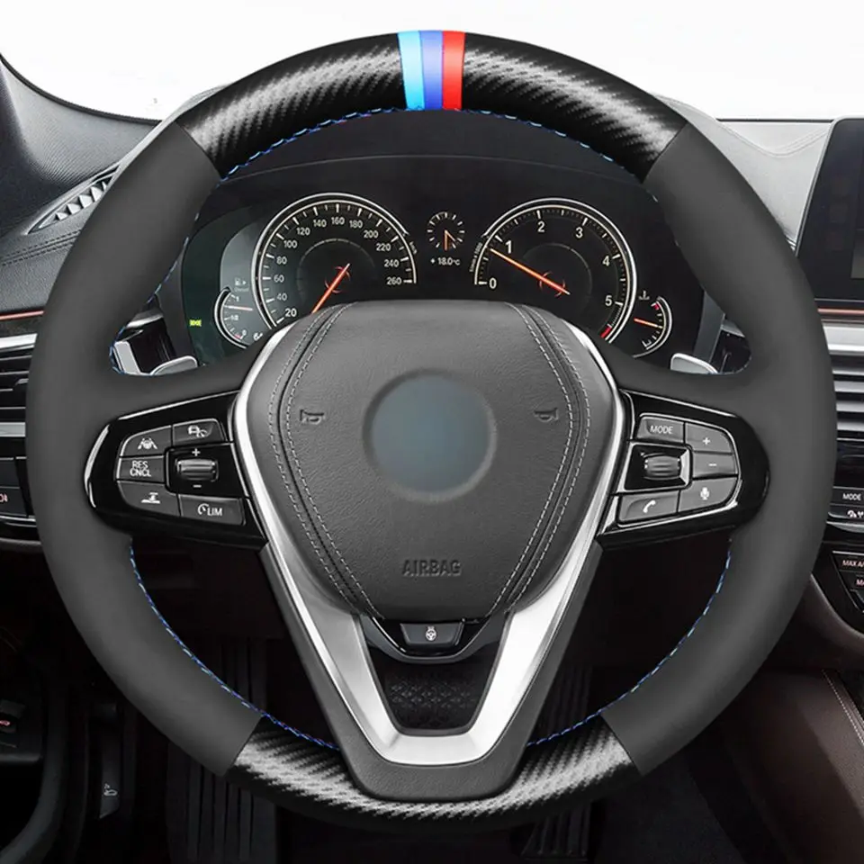 Черное замшевое углеродное волокно чехол рулевого колеса автомобиля...