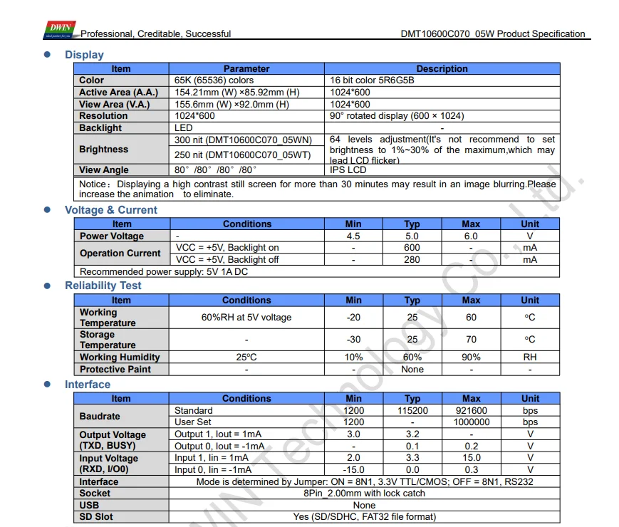 DWIN 7 дюймов, разрешение 1024*600, 65k цвета, IPS экран, высокий стандарт TFT LCD модуль Дисплей HMI с сенсорной панелью