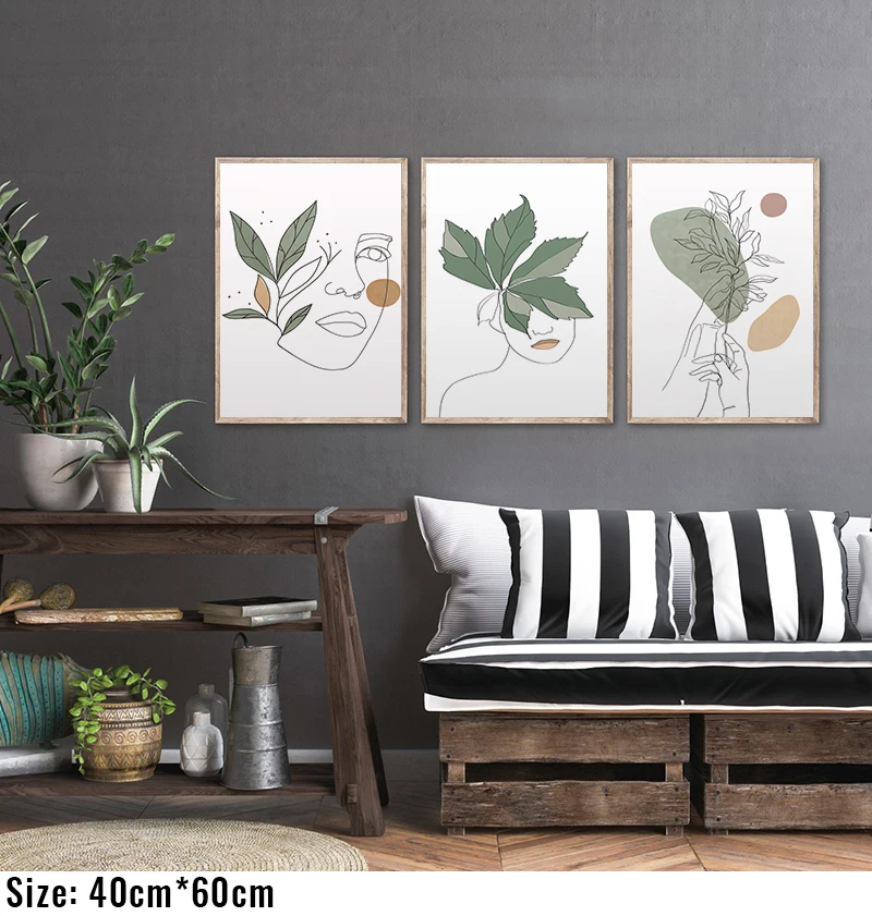 Абстрактное минималистское женское лицо руки линии пляж Бохо плакат кактус печать Настенная картина холст Картина Современный домашний декор