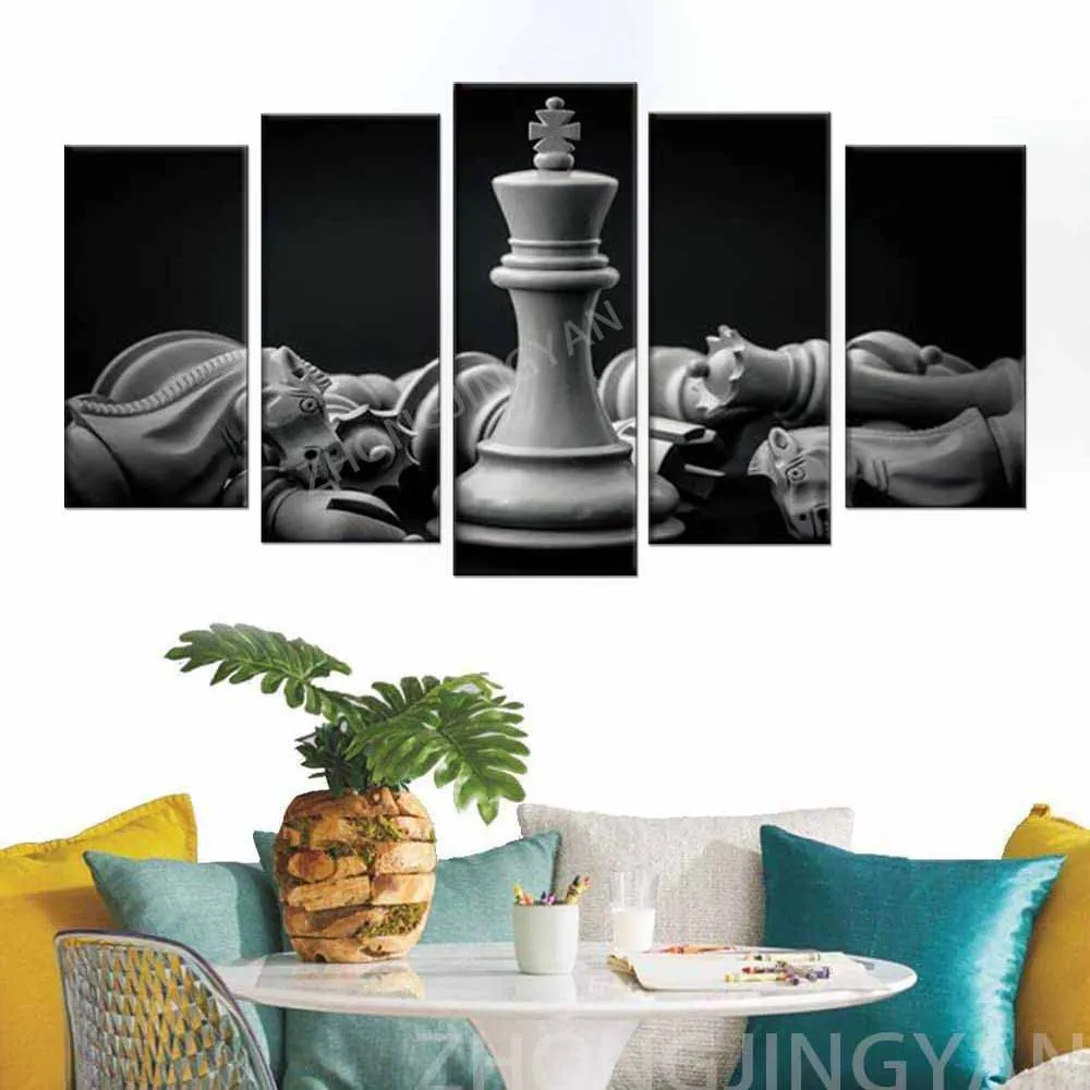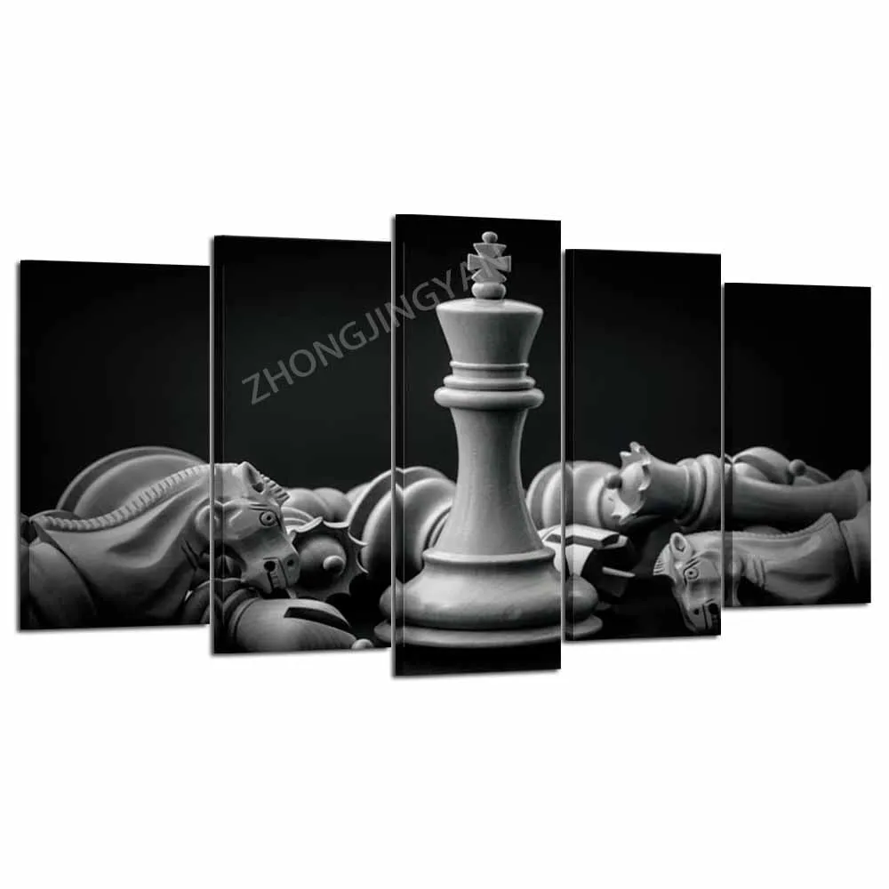 Черный и белый король и рыцарь шахмат установки на картины на холсте Картины 5 шт. фотографии печать плакатов искусство произведения искусства для