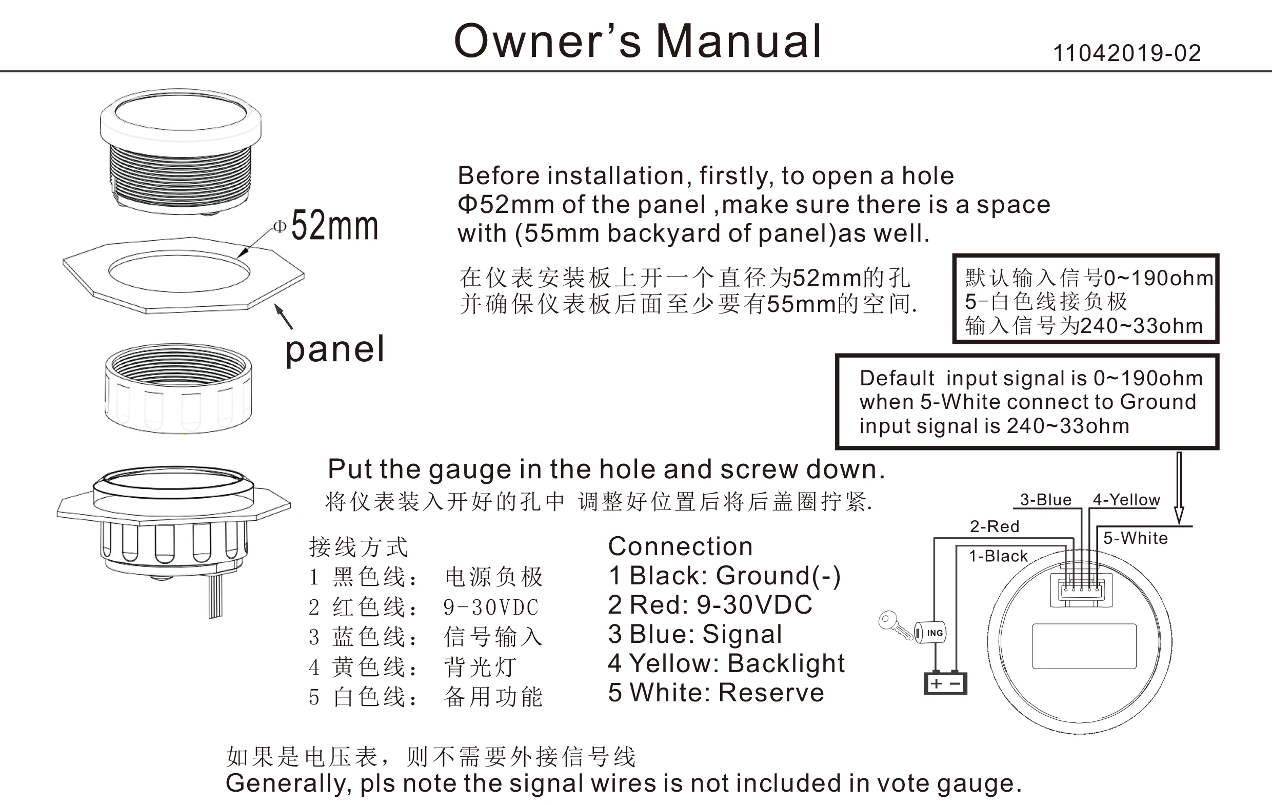 Item Name52mm Water Level Gauge with Sensor