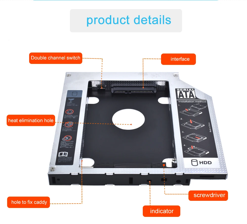 Универсальный чехол TISHRIC для жесткого диска 12,7 мм9,5 мм, чехол для жесткого диска SATA 3,0, 2,5 дюйма, адаптер для жесткого диска, жесткий корпус для ноутбука Optibay, алюминийпластик