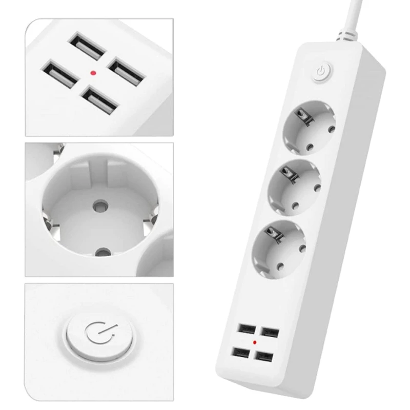 Сетевой фильтр с 4 USB-портами, 2500 Вт, 5 В, а