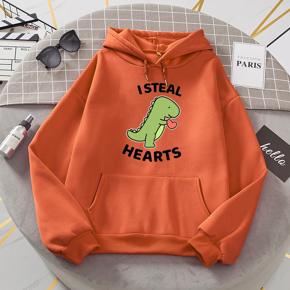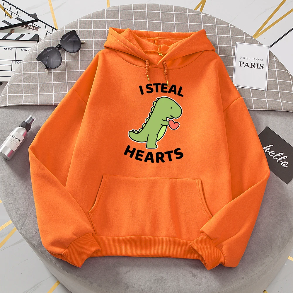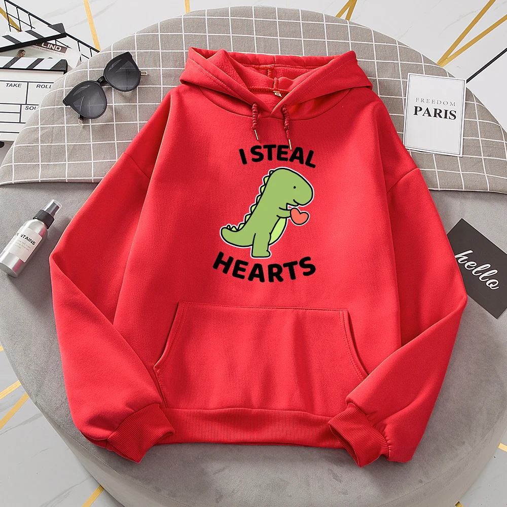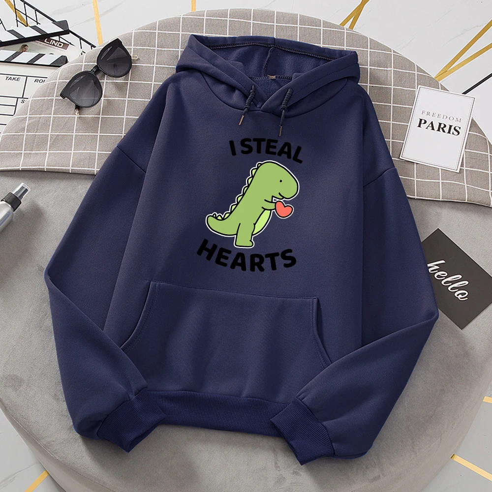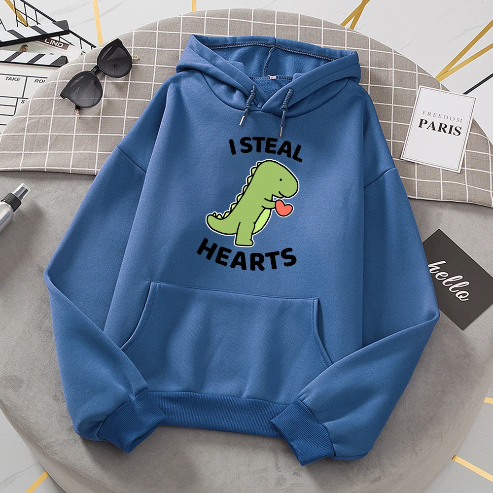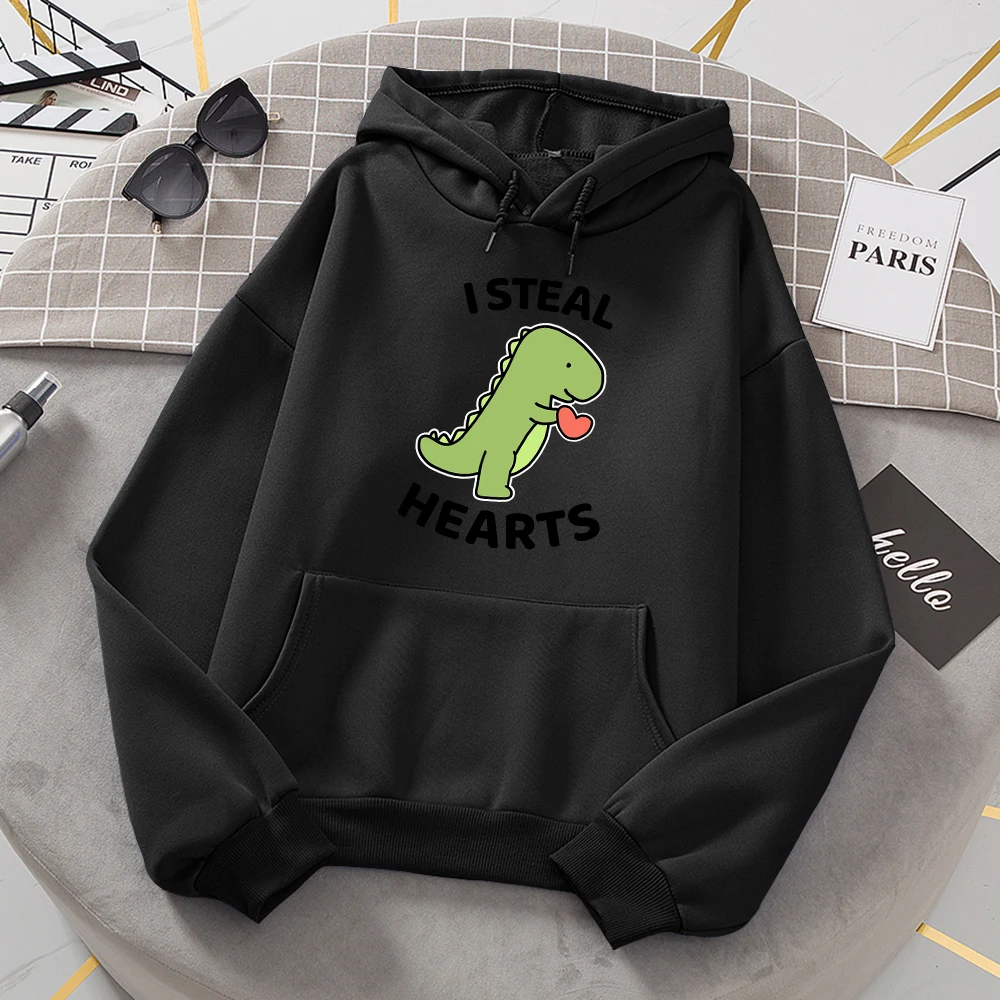 I Steal Hearts Little Dinosaur Print Hoody Womens Cartoon Loose Long Sleeves Забавный флис Женская мода Одежда высокого качества