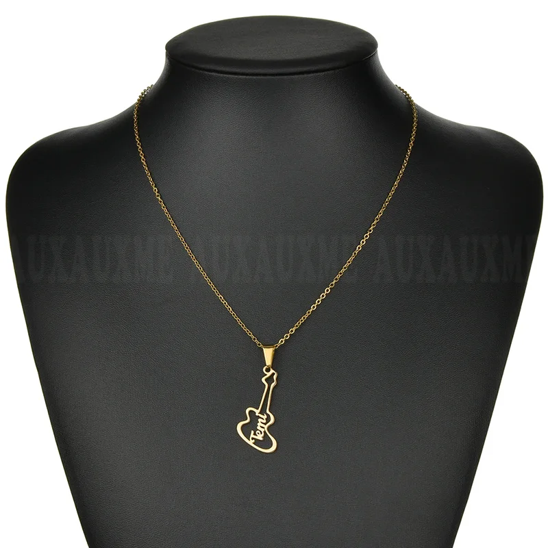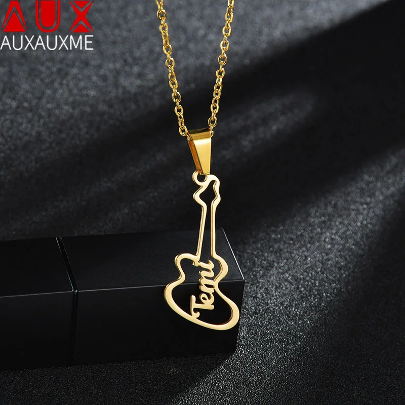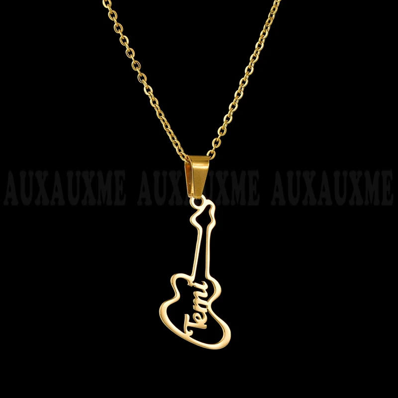Auxauxme Персонализированный Кулон с именем гитары, ожерелье из нержавеющей стали для женщин, мужчин и женщин, высокое качество, ювелирные изделия, подарки