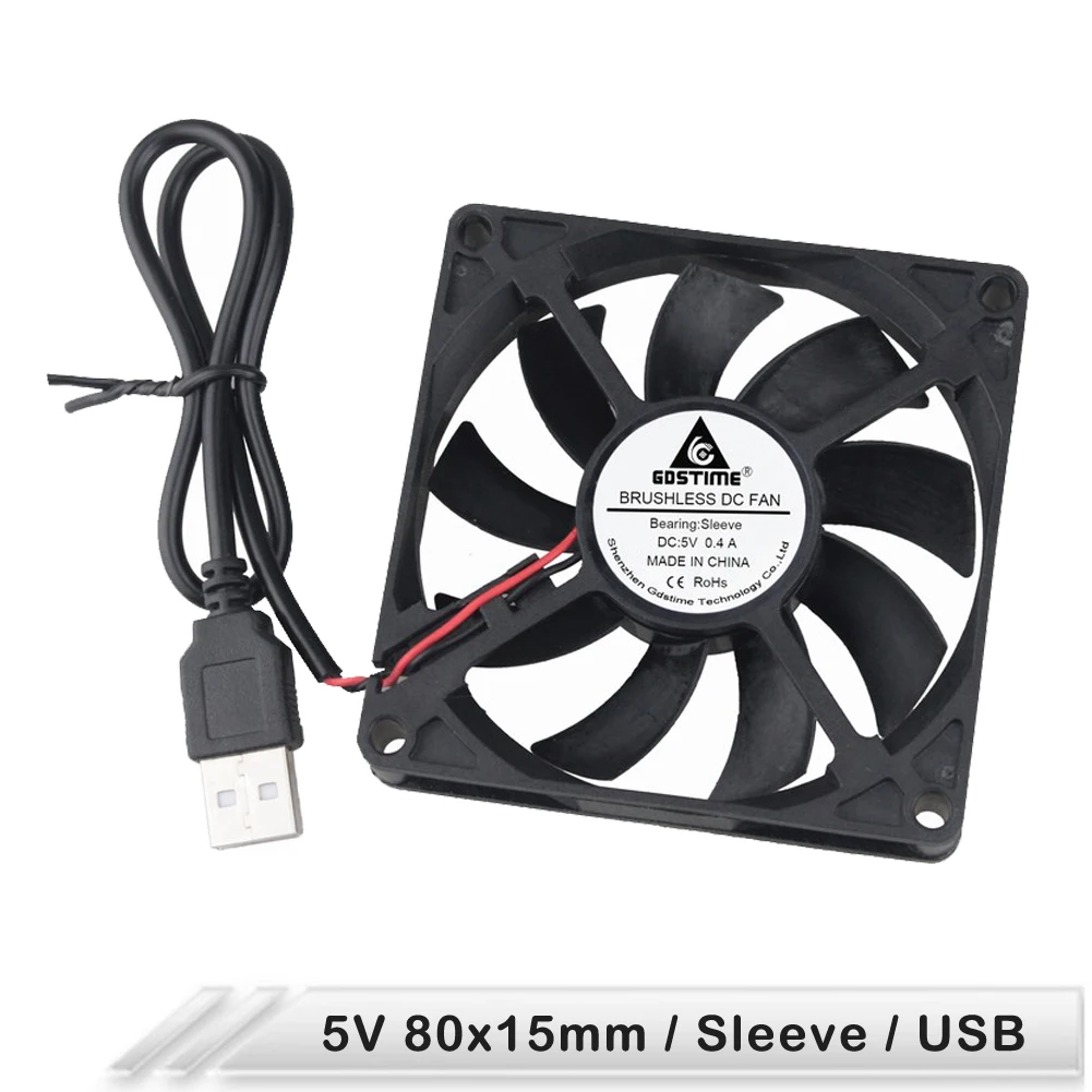 Вентилятор бесщеточный Gdstime 8015, 5 в пост. Тока, USB, 80x80x15 мм, 80 мм, 8 см, 80*15 мм, 10 шт.