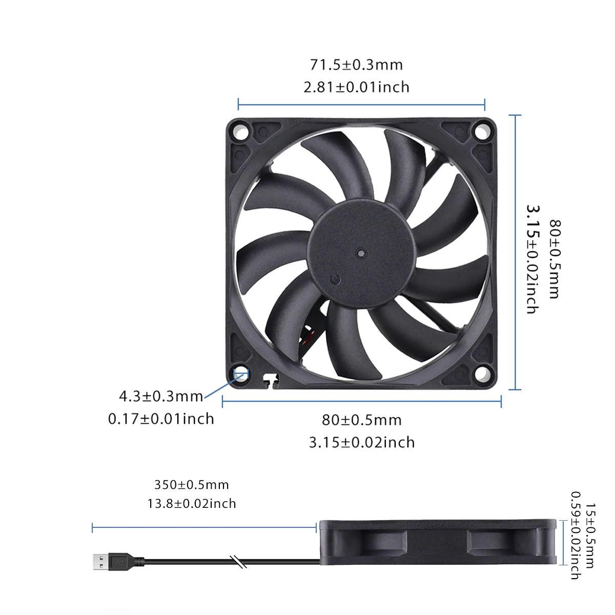 Размер вентилятора80x80x15mm