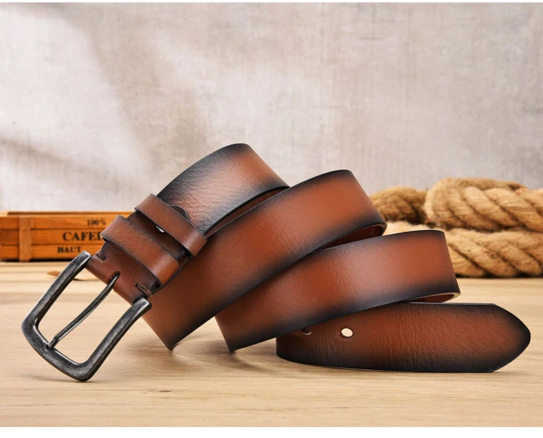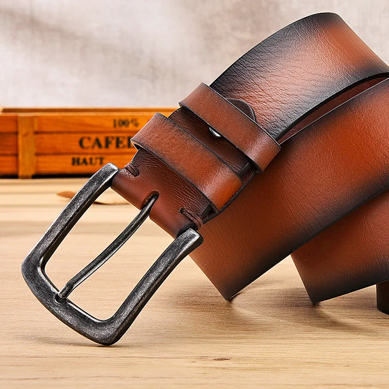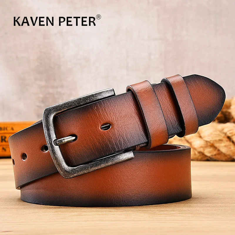 Винтажный дизайн, ремни из натуральной кожи для мужчин, роскошный оригинальный верхний слой из воловьей кожи, повседневный Высококачественный ремень с пряжкой: