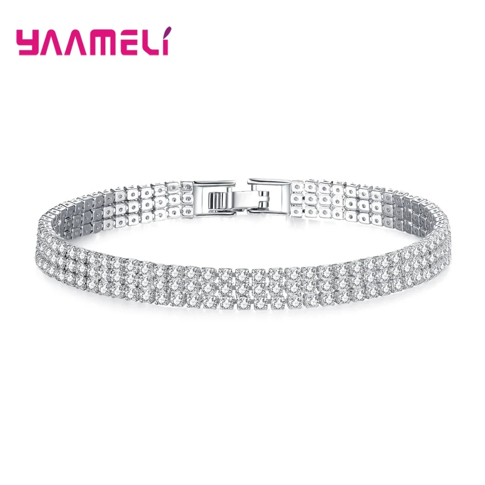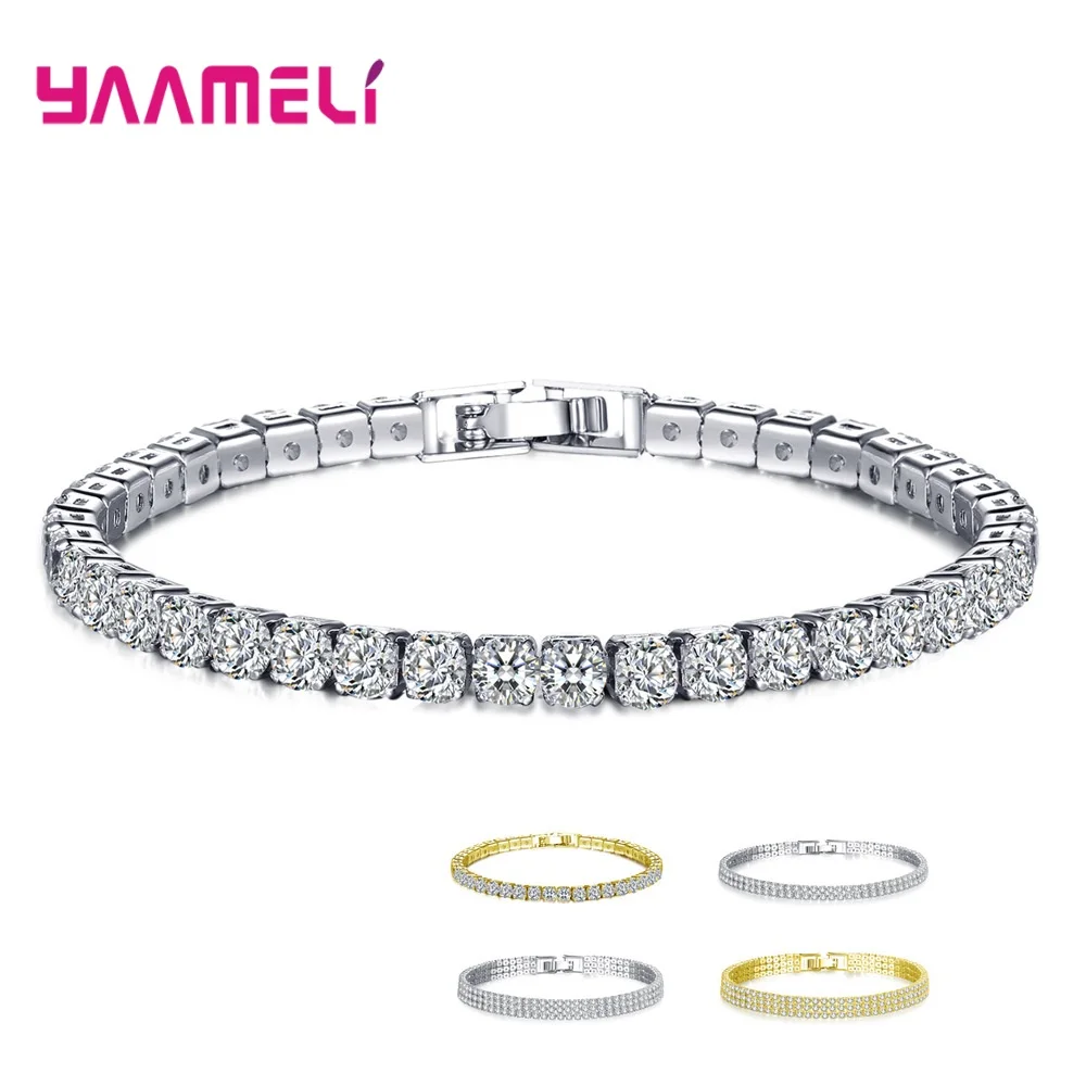 Классический блестящий браслет стразы в один или несколько рядов для женщин, лучший браслет из стерлингового серебра 925 пробы золотого цвета для тенниса, ювелирные изделия