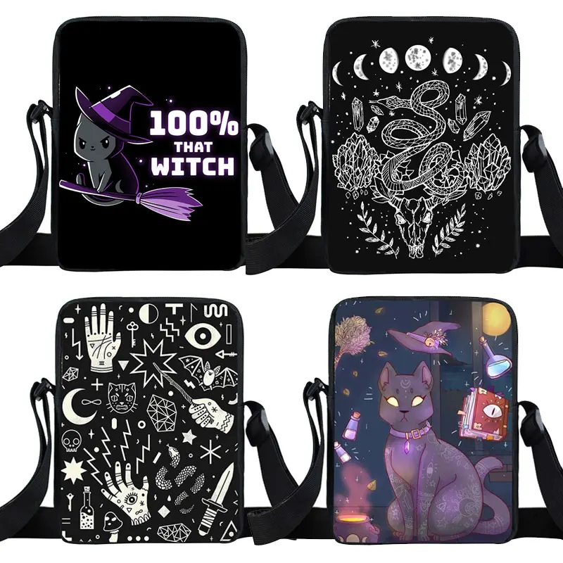 Колдовство ведьма/черная кошка мини сумка-мессенджер для женщин досуг наклонные сумки на плечо большая емкость сумка-мессенджер подарок
