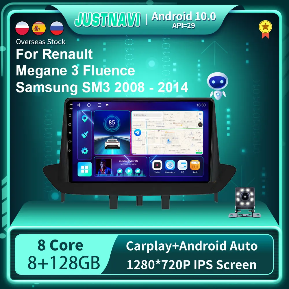 Автомобильный радиоприемник JUSTNAVI Android 10,0 GPS для Renault Megane 3 Fluence Samsung SM3 2008 - 2014 мультимедийный плеер DSP CarPlay 8G 128G