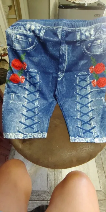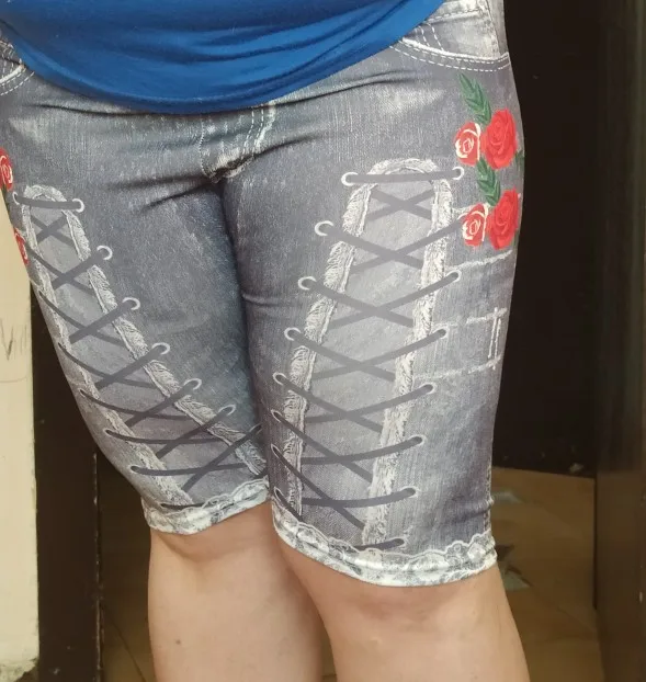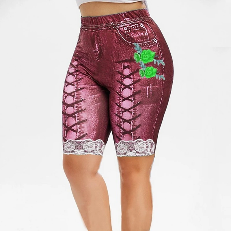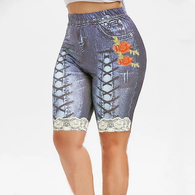 Размера плюс женские шорты для йоги, леггинсы, имитация денима, короткие штаны, летние женские шорты с цветочным принтом и высокой талией, 2021