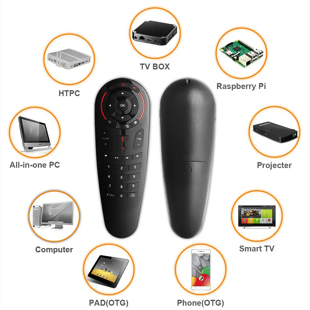 Это Беспроводная воздушная мышь со встроенным осевым гироскопом и датчиком гравитационного ускорения и верным голосовым входом. Он может выполнять функции традиционного дистанционного управления, компьютерной мыши и игрового контроллера движения на платформе android.Микро-приемник Plug and play совместим с персональным компьютером, проектором, ТВ-боксом,Домашний кинотеатр персональный компьютер и т. Д.-Этот продукт имеет 33 кнопки, используется для ИК-обучения-Голосовое дистанционное управление -Как использовать ИК обучения Funcion:Этот продукт имеет 33 кнопки, используется для ИК-обучения. (за исключением кнопки «ТВ»)Этапы работы функции инфракрасного обучения:1. В ИК-режиме нажмите и удерживайте кнопку ''tv'' в течение 3 секунд.2. Когда красный светодиодный светильник медленно мерцает, подсказки для входа в ИК-режим обучения.3. Пусковая трубка инфракрасного пульта дистанционного управления находится в стороне от пусковой трубки воздушной мышиОколо 2-3 см, нажмите кнопку инфракрасного дистанционного управления, когда значение инфракрасного кодаРаспознан, красный светодиодный светильник быстро мигает.4. Когда красный светильник мигнет в течение 3 секунд, нажмите любую кнопку, чтобы сохранить (за исключением кнопки tv'').Когда функциональное хранилище завершено, красный светодиодный индикатор снова загорится, иТогда вы можете продолжать учиться.Если вам не нужно продолжать обучение, нажмите кнопку «tv», чтобы выйти из режима ИК-обучения.Нажмите кнопку ''tv'' +'' del'' в течение 5 секунд, красный светодиодный индикатор мигает, побудив восстановитьЗаводские настройки.Теплый наконечник:Голосовое дистанционное управление не совместимо с Amazon Fire TV и Fire TV Stick, или с некоторыми Samsung, LG, Sony smart TV,Mi TV Box.