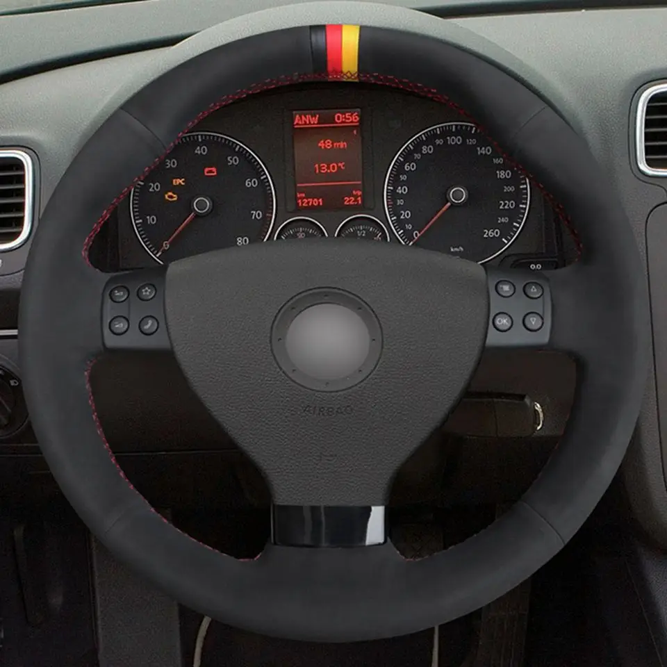 Сшитый вручную черный замшевый красный маркер Чехлы рулевого колеса...