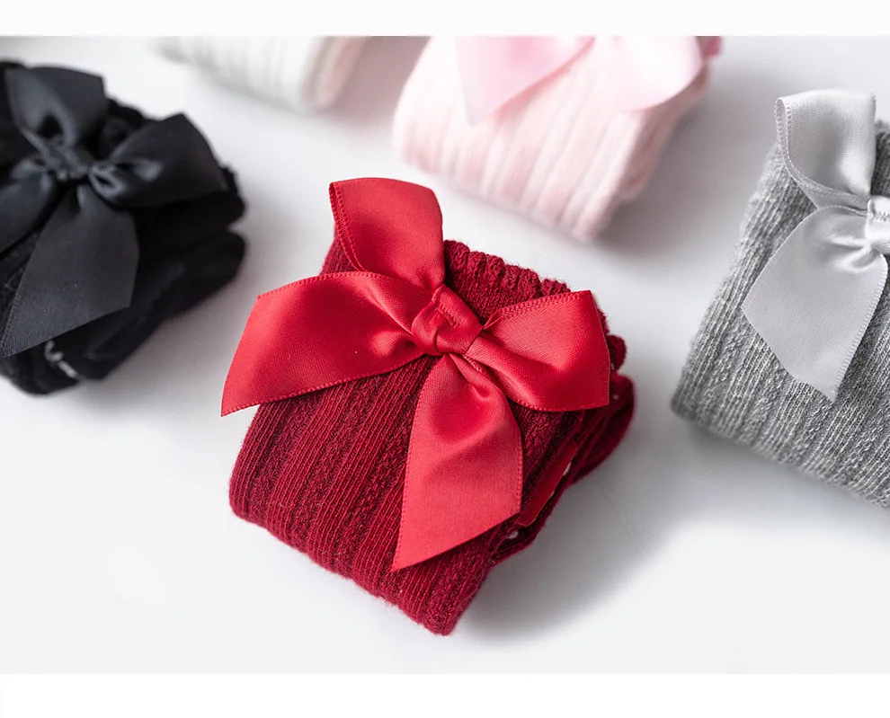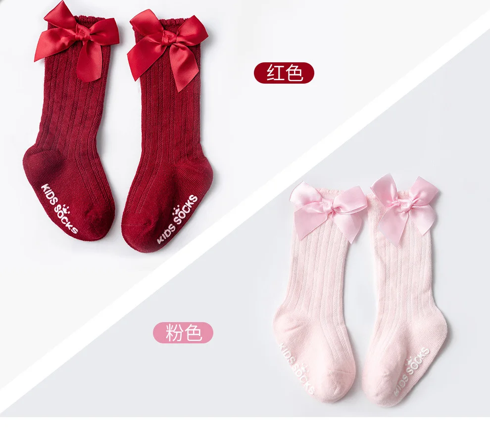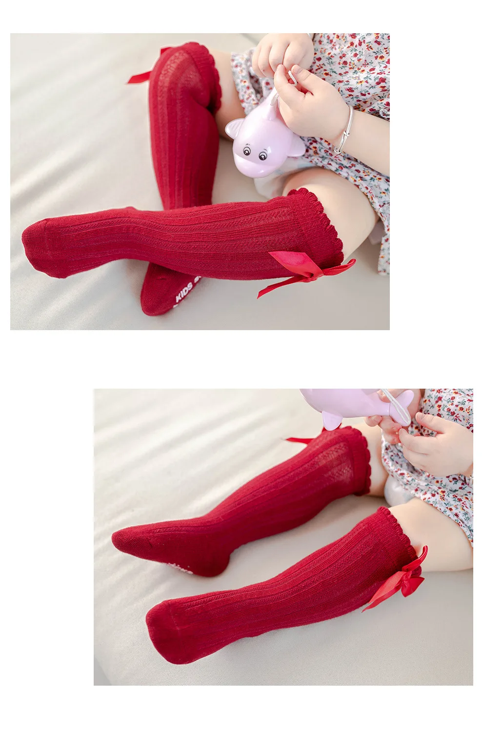 Носки с бантом для новорожденных девочек, сетчатые Нескользящие махровые хлопковые носки до колен, на Рождество и зиму, для принцесс