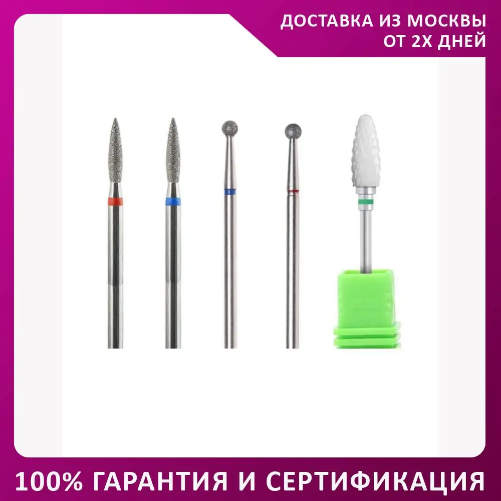 Набор фрез для маникюра 5 шт, алмазные фрезы + кукуруза зеленая