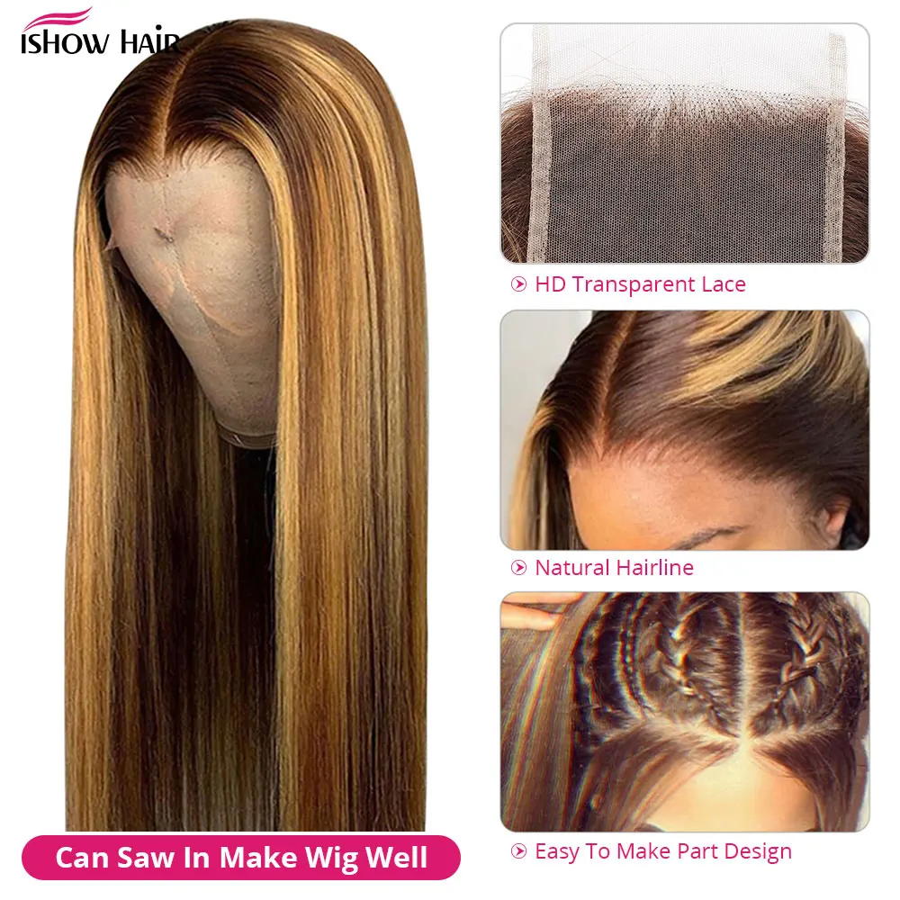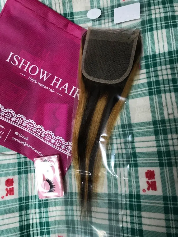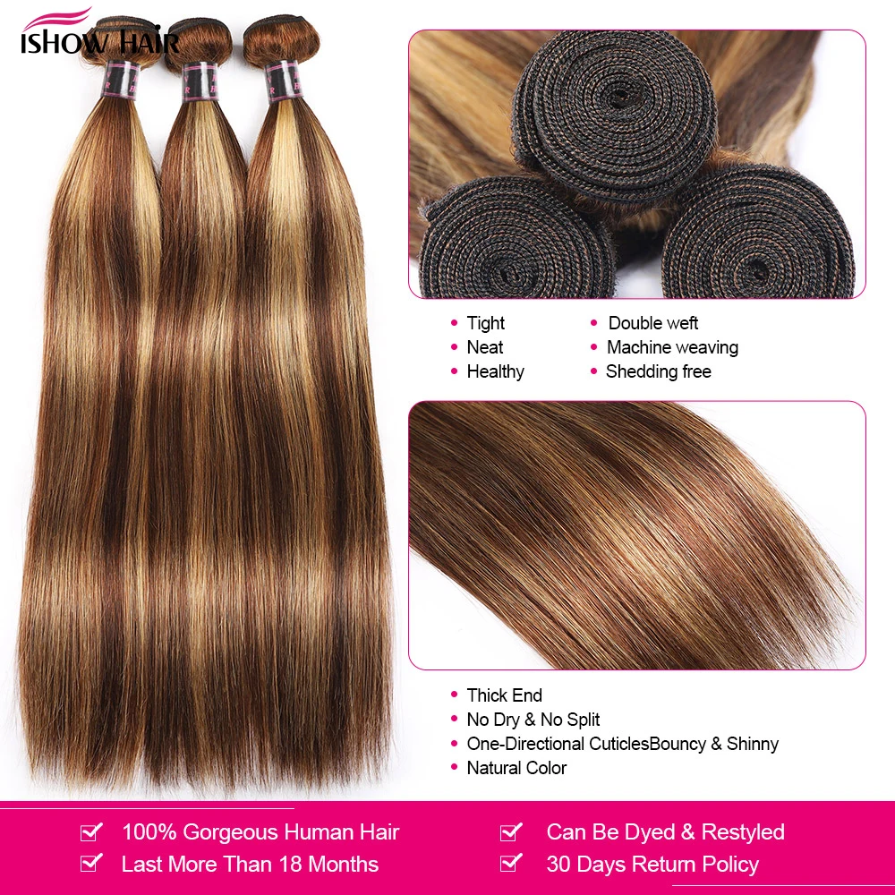 Ishow, пучки с эффектом омбре, с закрытием, бразильские прямые пряди из костей с закрытием, коричневые пряди человеческих волос с закрытием