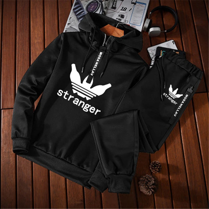 Мужской спортивный костюм, повседневные спортивные костюмы, толстовка + спортивные штаны, костюм для бега, комплект из 2 предметов, толстовка с капюшоном на молнии, мужская спортивная одежда с капюшоном