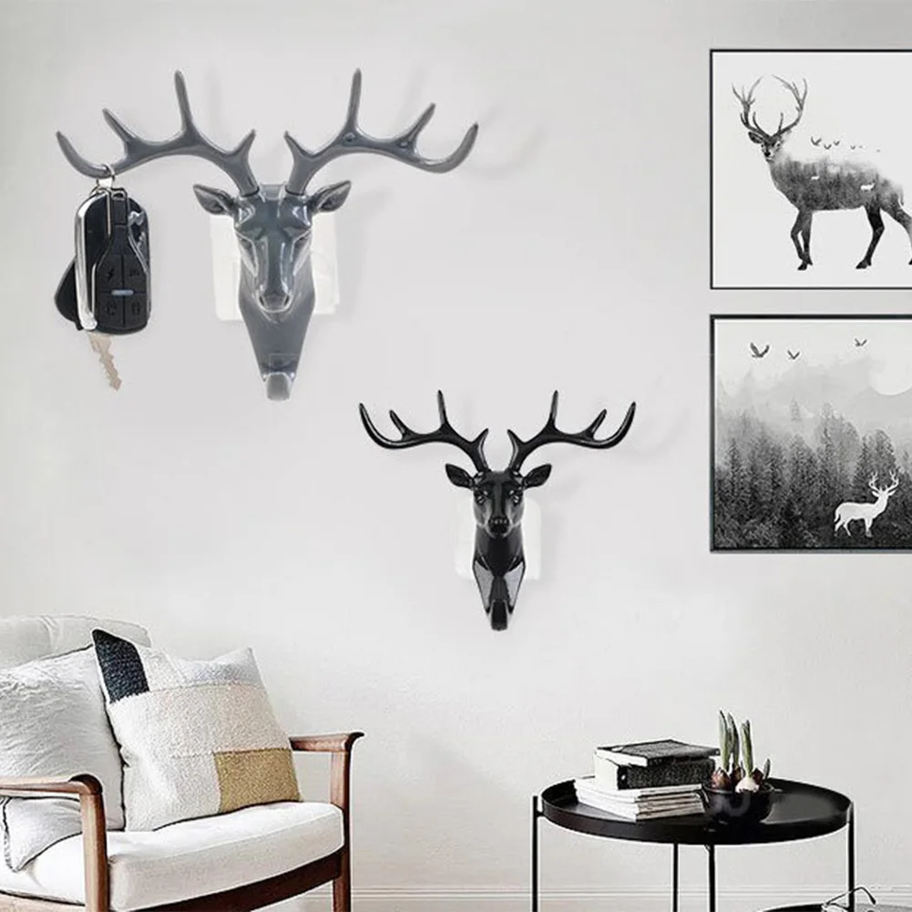 Настенный крючок с головой оленя, самоклеящаяся вешалка для одежды ...