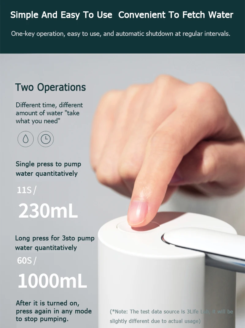 3life складной Электрический диспенсер для воды USB зарядное устройство кнопка управления Портативный мини Автоматический водяной насос