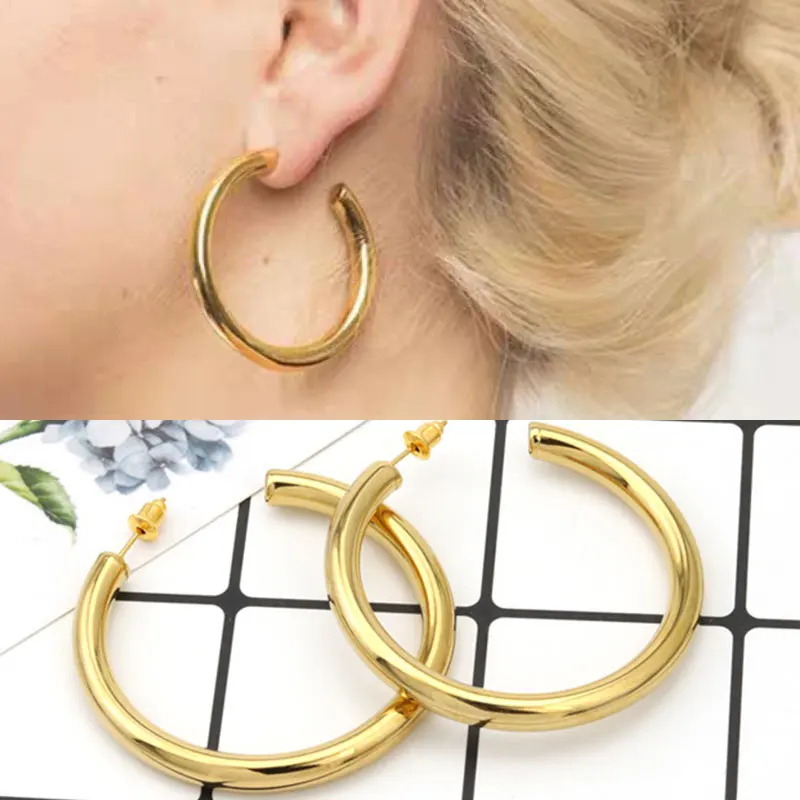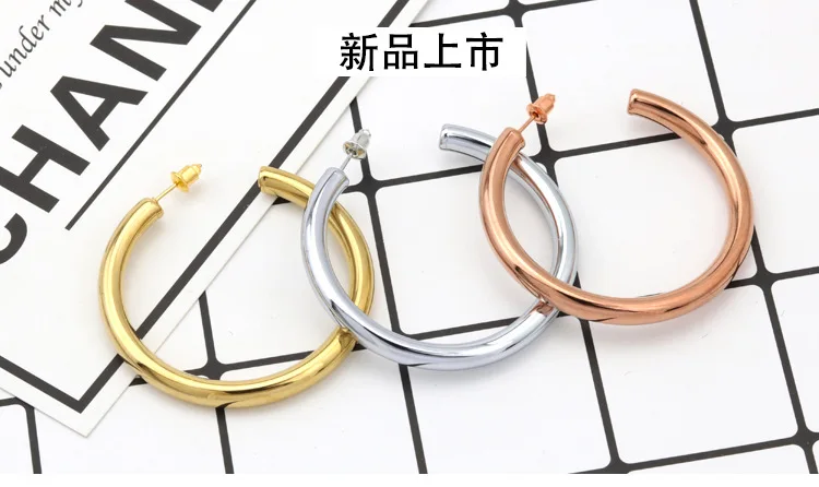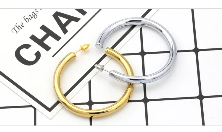 Нержавеющаясталь минималистский геометрический большой круг с круглым открытым серьги в виде колец, для Для женщин даного грубая Панк Металлический CC светильник Вес