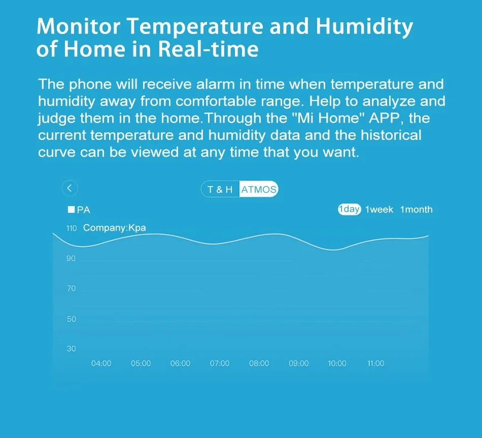 Датчик влажности Aqara может контролировать температуру, влажность и атмосферное давление, а затем может внести изменения в окружающую среду, отправив уведомление на ваш телефон через приложение. С возможностью соответствия с другими смарт-устройствами, такими как пульт дистанционного управления шлюзом, умная розетка, универсальный контроллер и т. д. этот датчик может помочь вам создать умный дом. Более того, этот умный датчик легко контролировать изменение температуры и влажности, просматривая данные в соответствии с историческими записями.