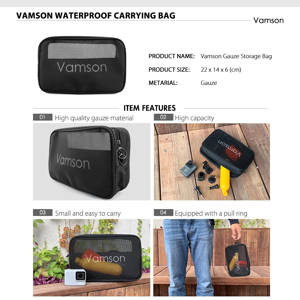 Vamson для GoPro Hero 9 8 7 6 5 4 3 черный сетчатый пакет для хране...